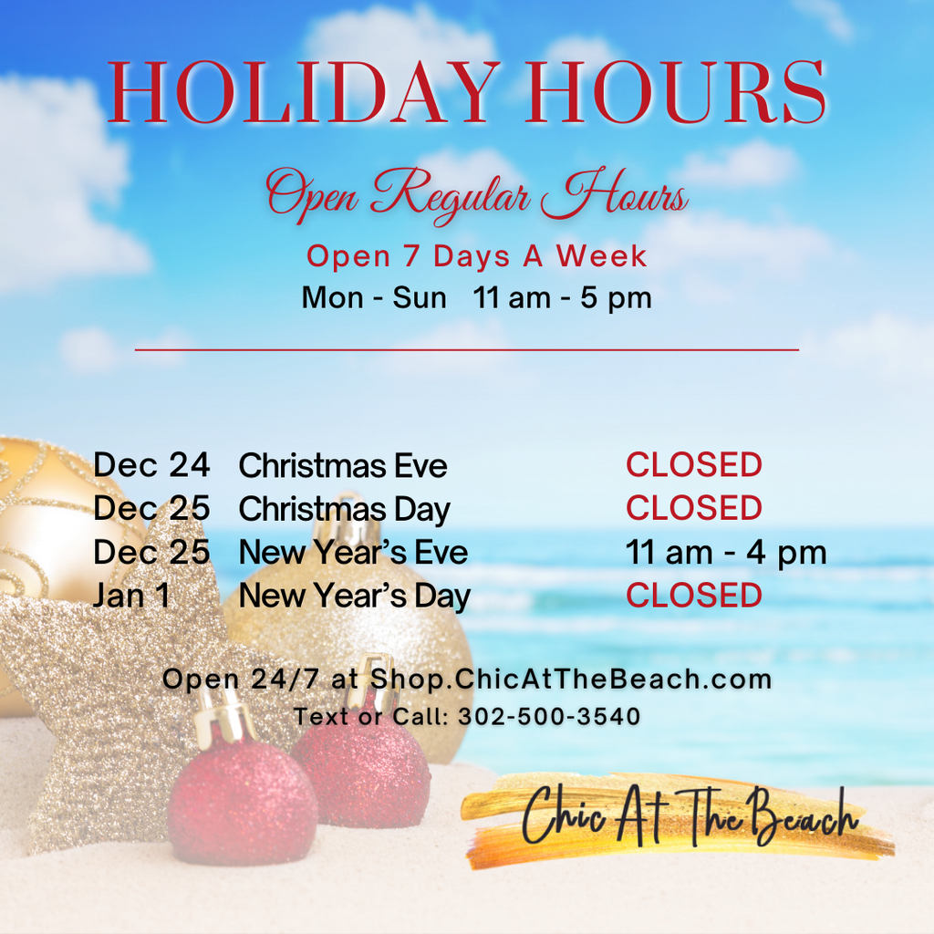 Chic At The Beach is located at the new Coastal Way Retail complex, 18259 Coastal Highway, Lewes, Delaware, and open everyday of the week from 11:00 a.m. to 5:00 p.m.
