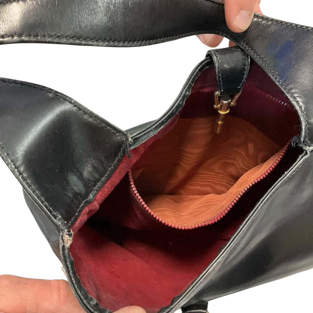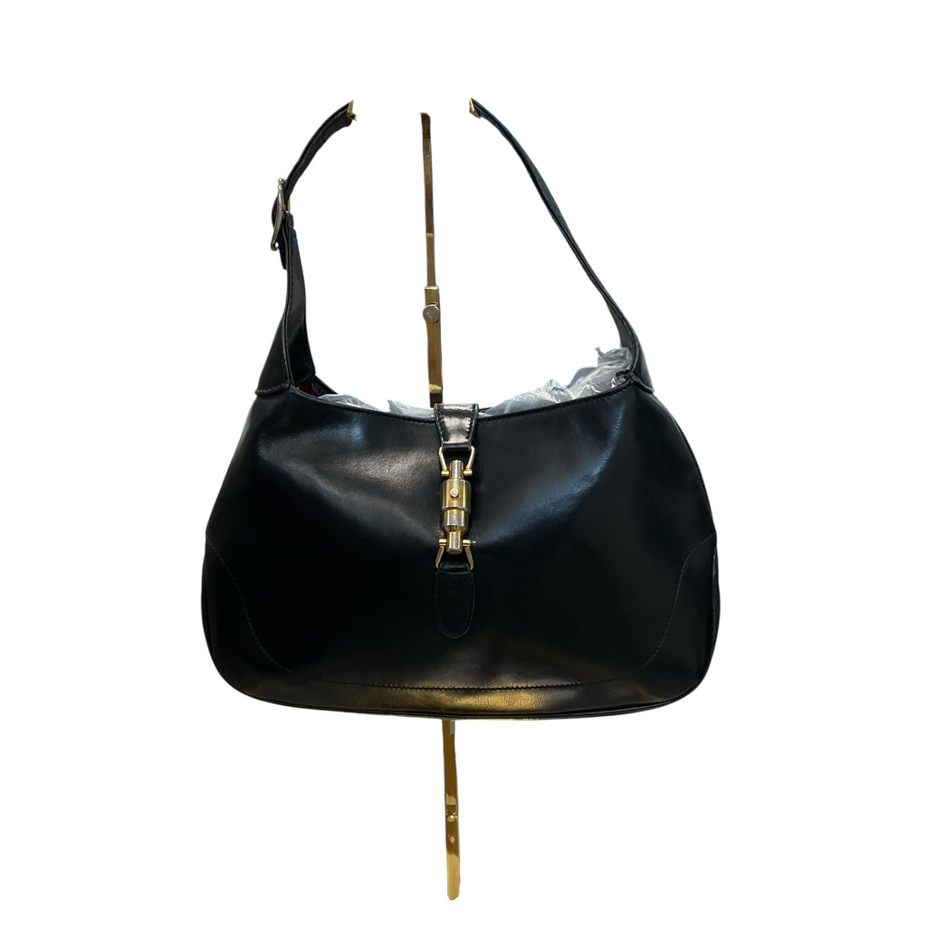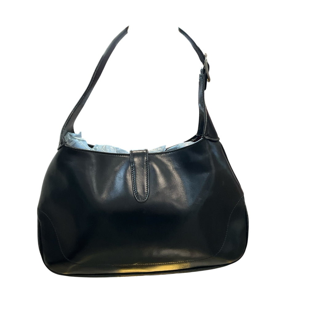 Authentic Gucci Black Jackie O STRUCTURED Leather AUTHENTICATED SL. Measurements: Length 8.5" Width 13" Depth2". CHIC AT THE BEACH,Lewes,DE.19958.
