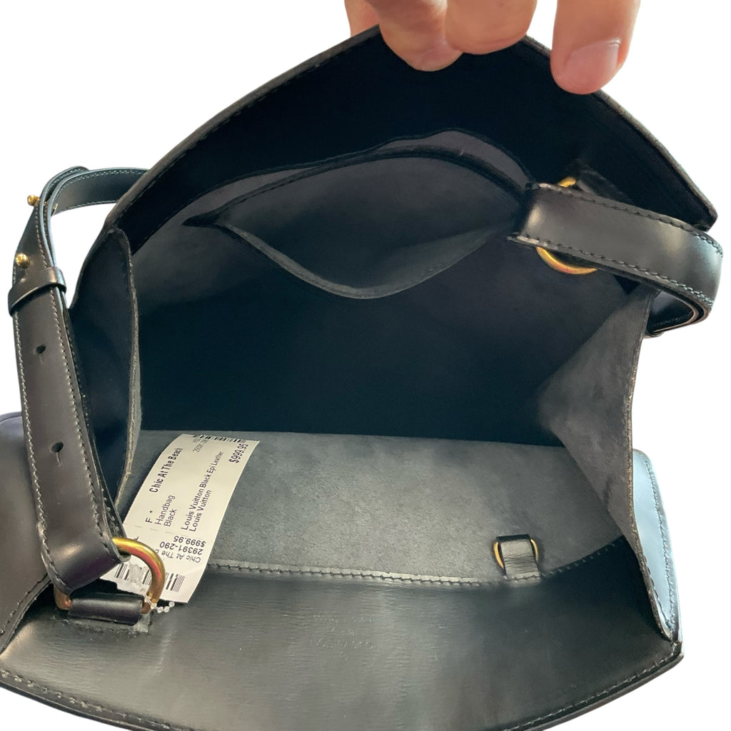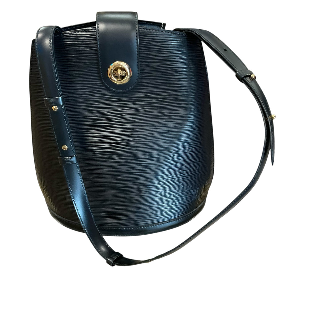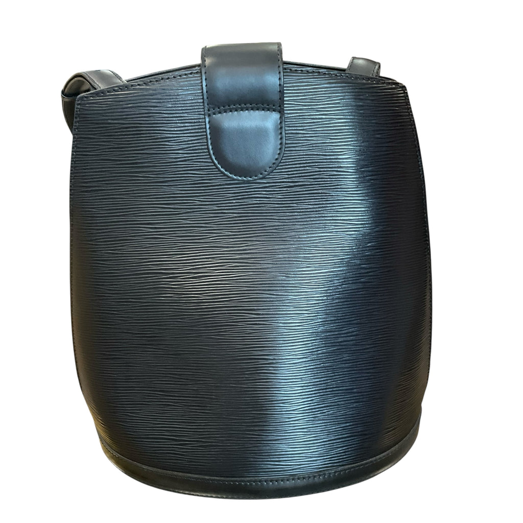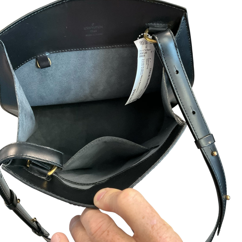 Authentic Louis Vuitton Black Epi Leather Shoulder Bag With Gold Hardware And Crossbody Strap.Measurements: Width10"/ Length 11"/ Depth 7"( oval Bottom) Shoulder Strap Drop18". CHIC AT THE BEACH ,Lewes,DE.19958.