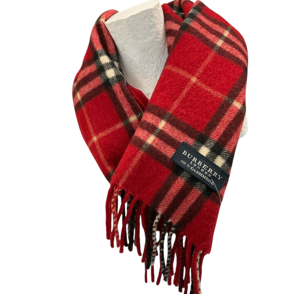 Burberry 100% cashmere Red Plaid Scarf With Fringe.29391-347.CHIC AT THE BEACH ,Lewes,DE.19958.