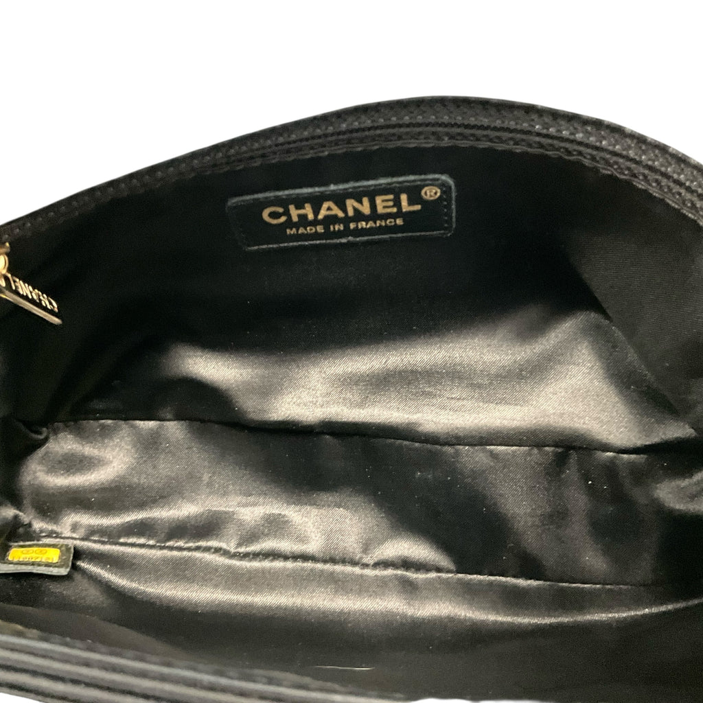 Chanel Black Quilted Bag Chain With Box.Measurements:Length 5.5 Width:9" Depth 3".CHIC AT THE BEACH, Lewes,DE. 19958