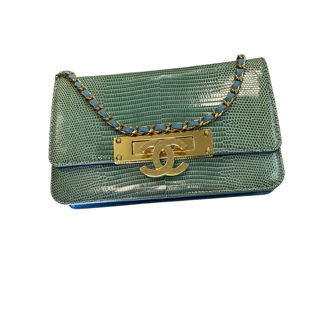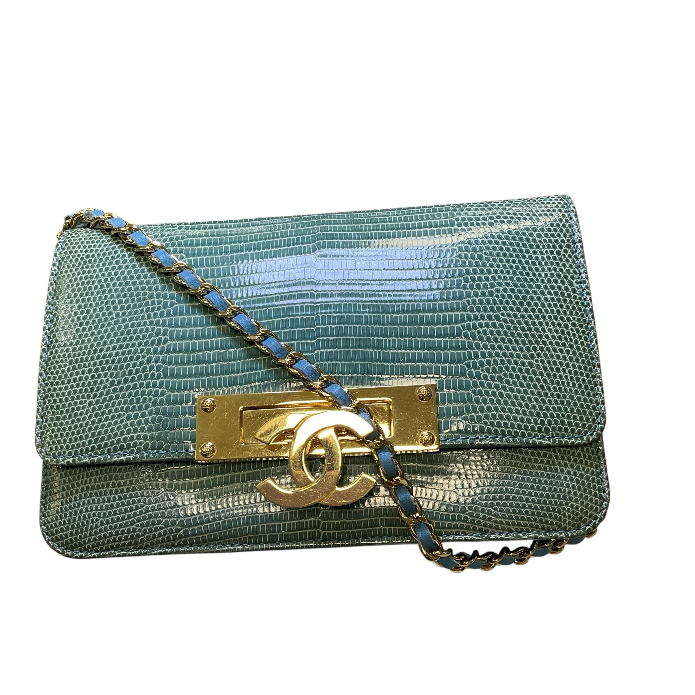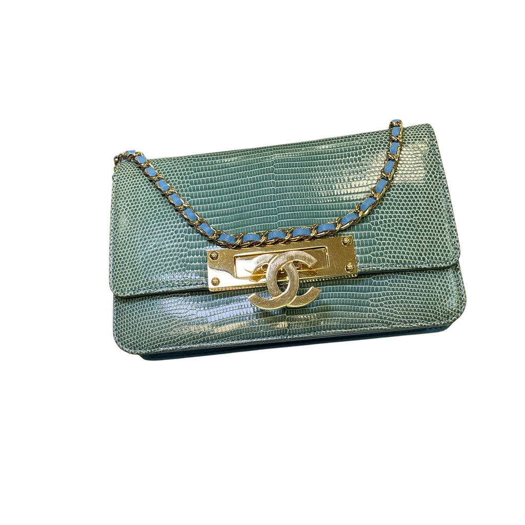 Authentic CHANEL Exotic Lizard RARE Wallet On A Chain Gold Hardware W Card, Sleeper, Box Serial #19241676 H = 5" L = 7.5" D = 1.5" Chain Drop = 24.5" CHIC AT THE BEACH,Lewes,DE.19958.