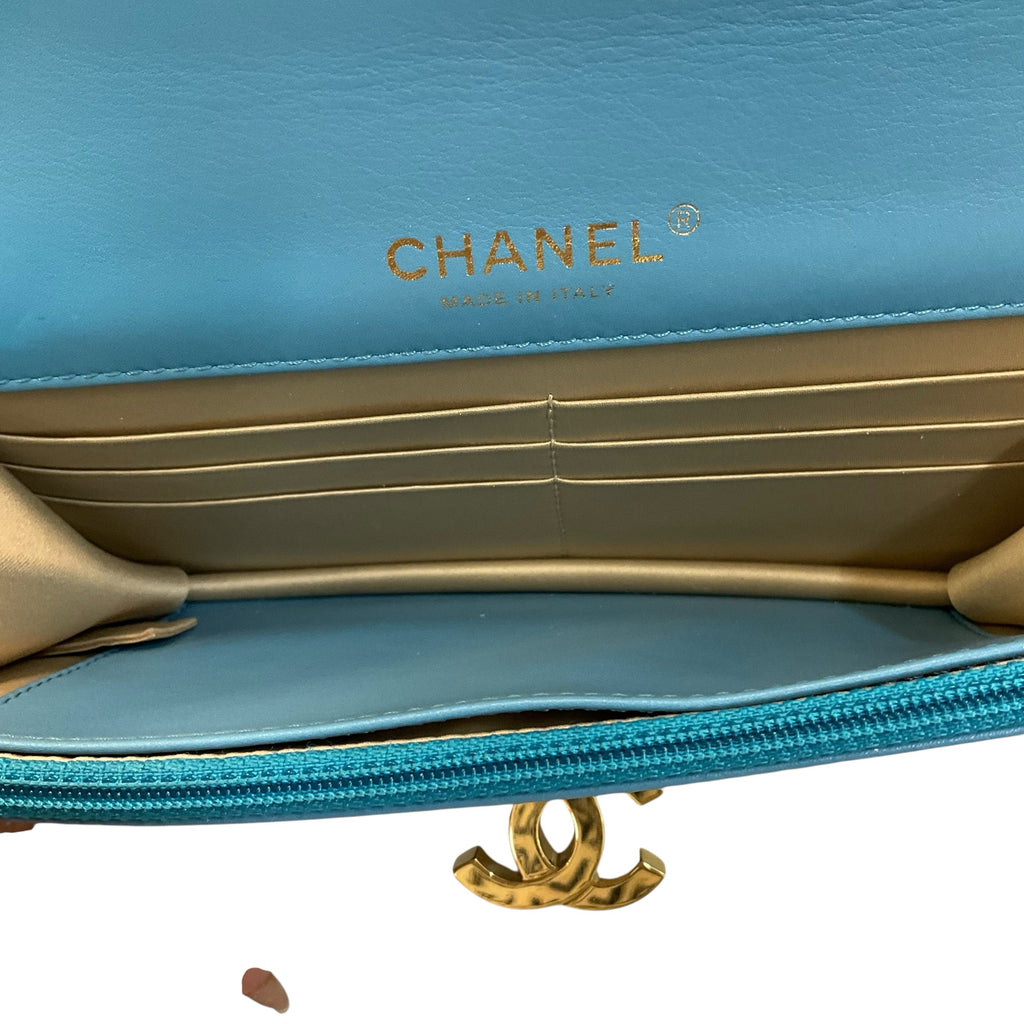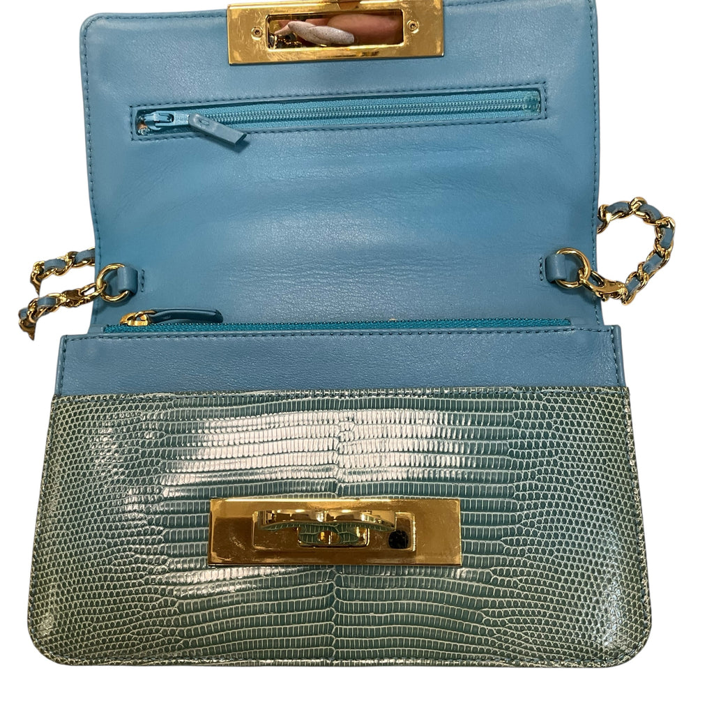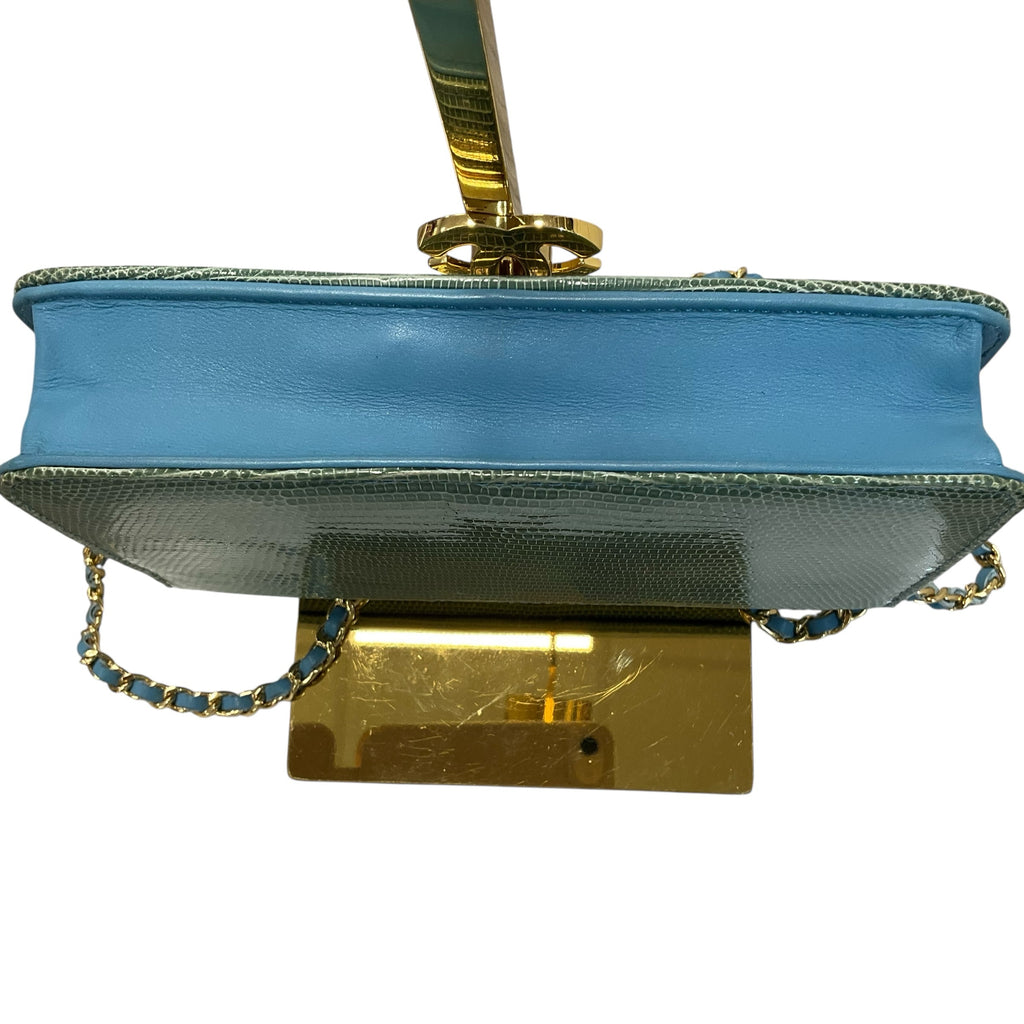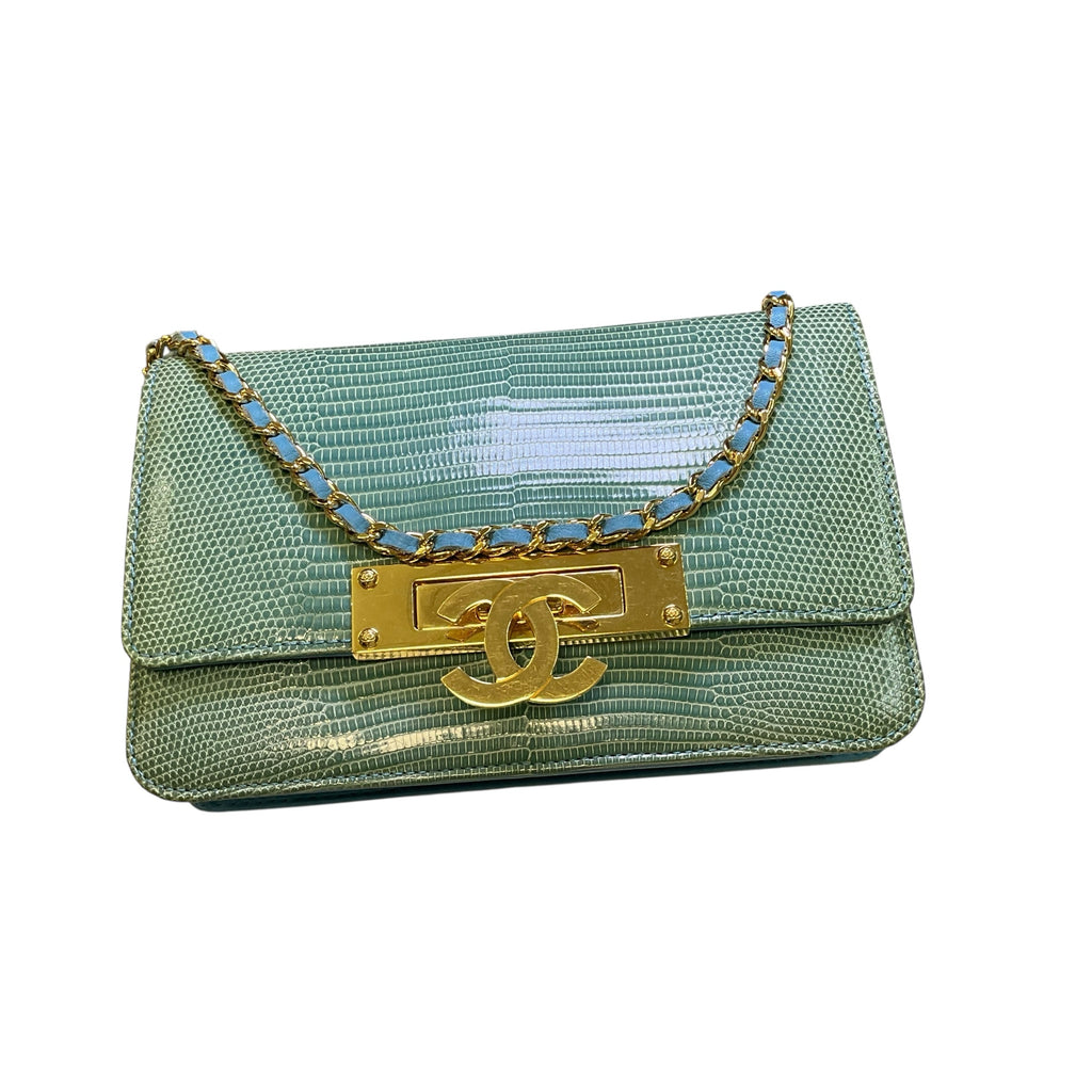 Authentic CHANEL Exotic Lizard RARE Wallet On A Chain Gold Hardware W Card, Sleeper, Box Serial #19241676 H = 5" L = 7.5" D = 1.5" Chain Drop = 24.5" CHIC AT THE BEACH,Lewes,DE.19958.