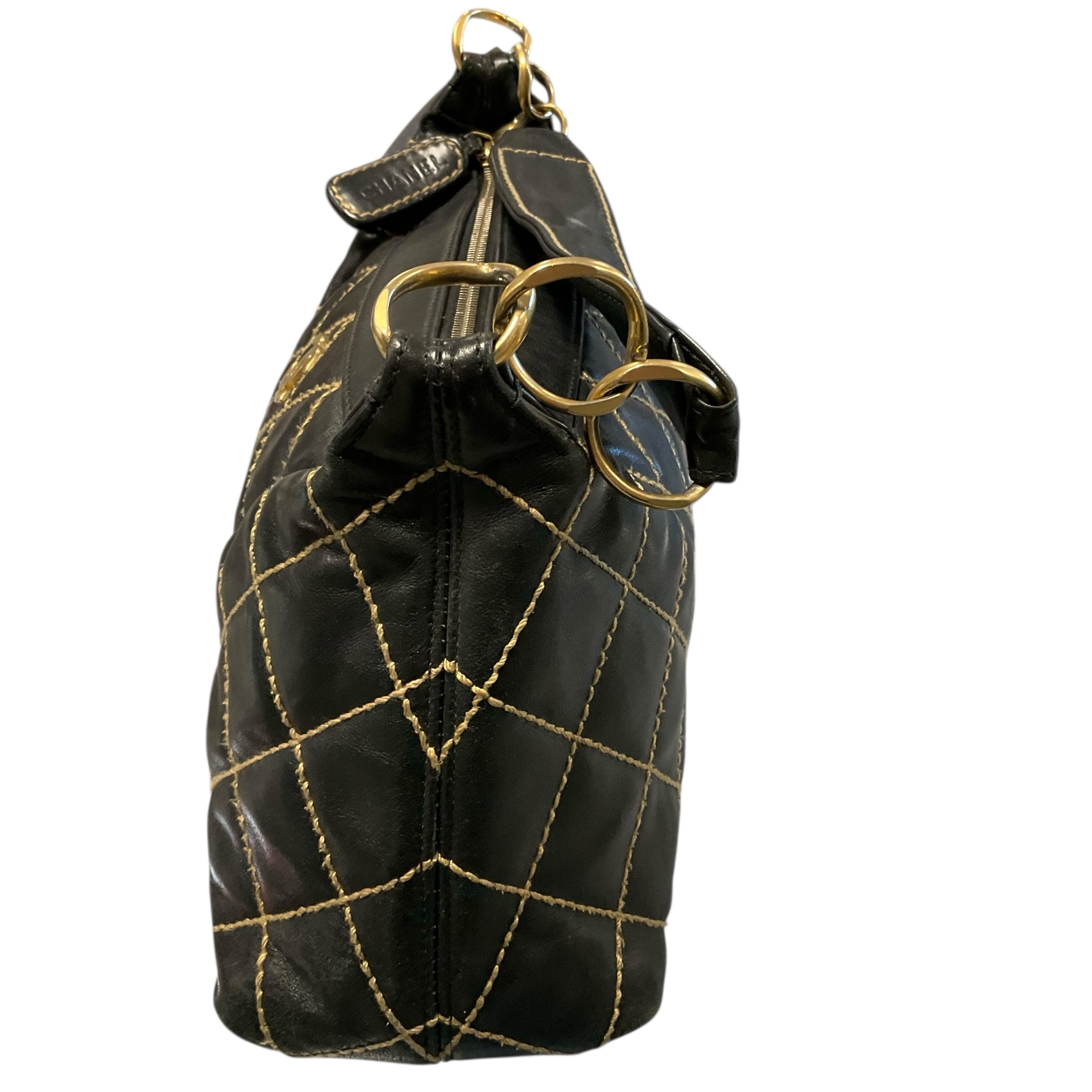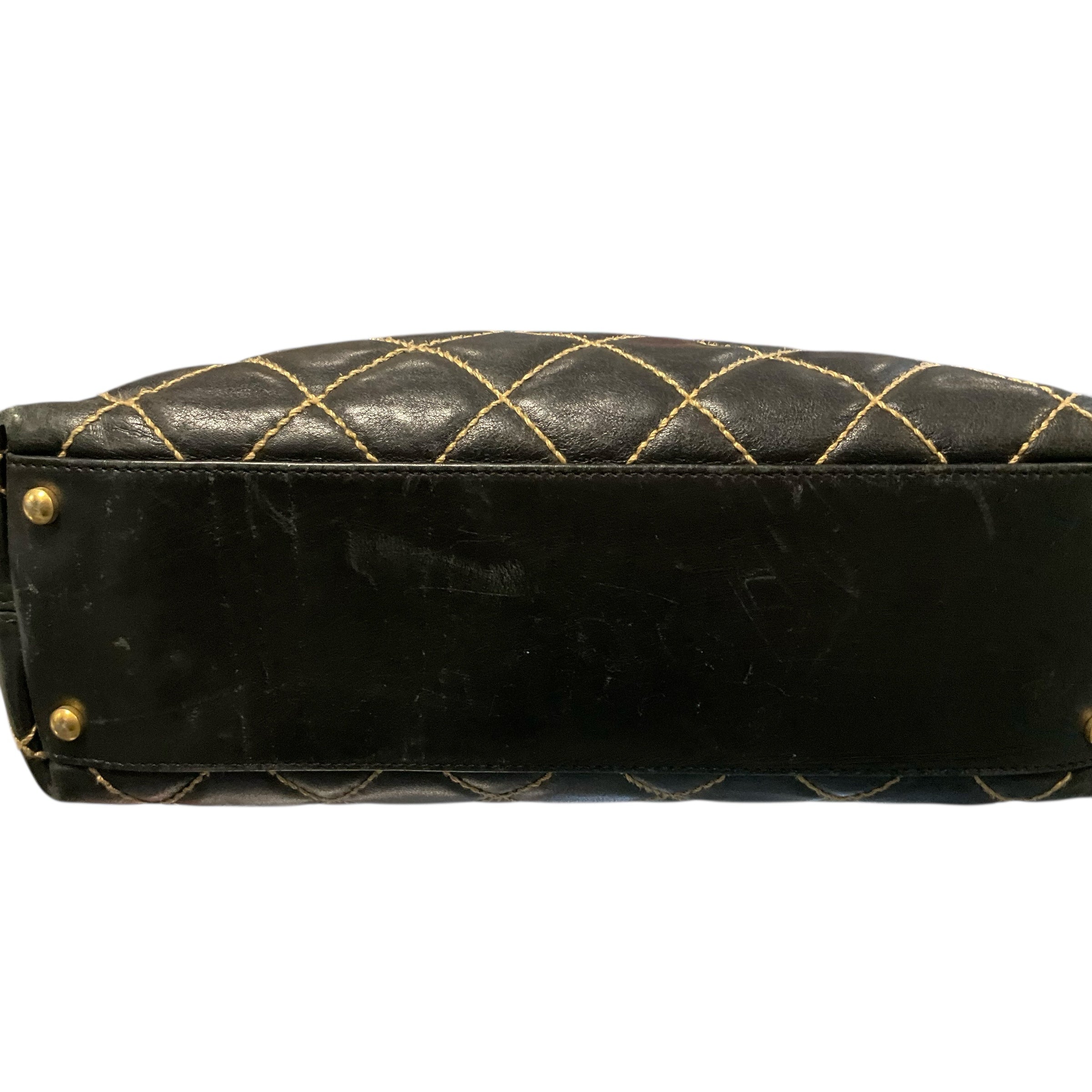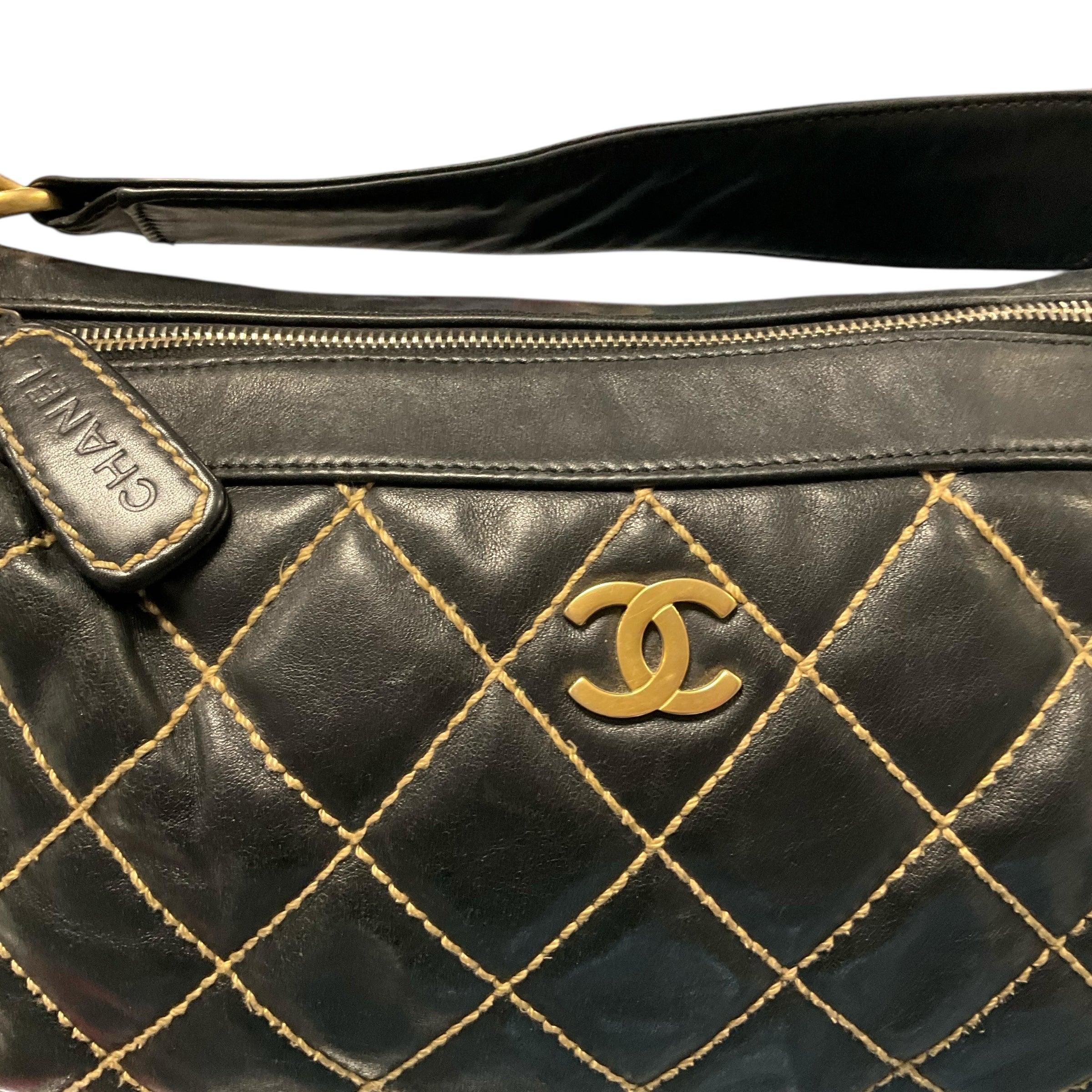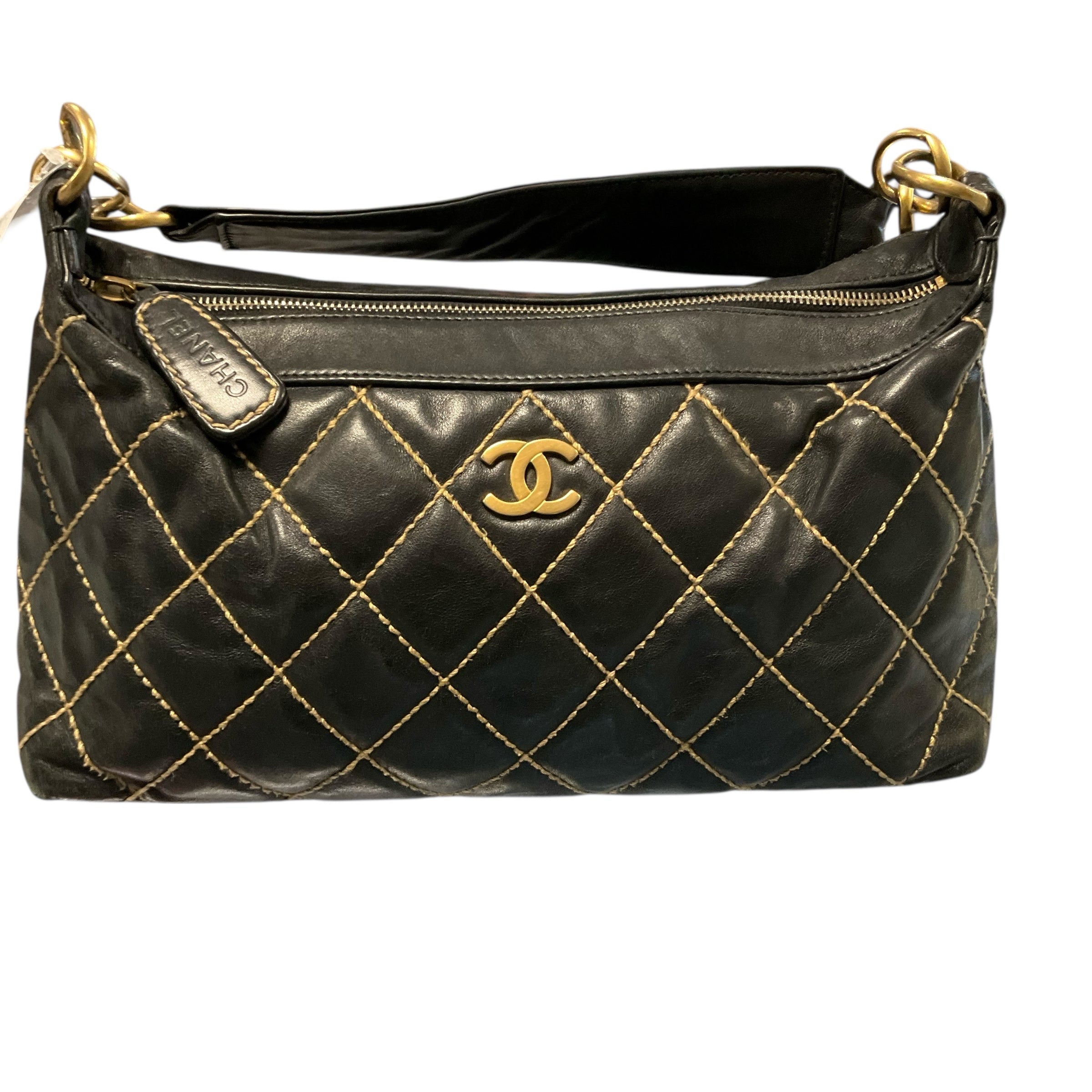 Authentic CHANEL Quilted Leather Wild Stitch with Gold Trim and CC Logo. 7 Inch Strap Drop.