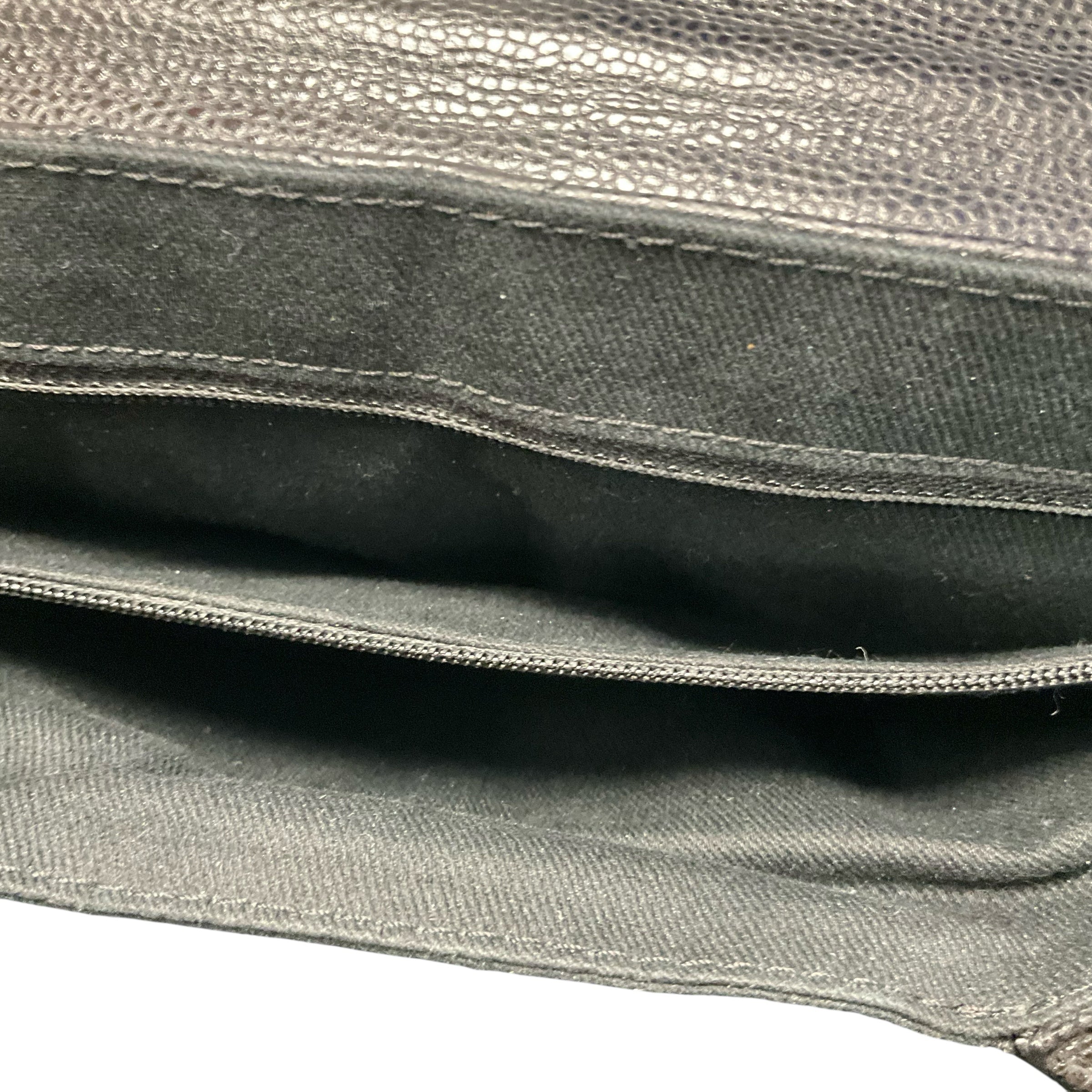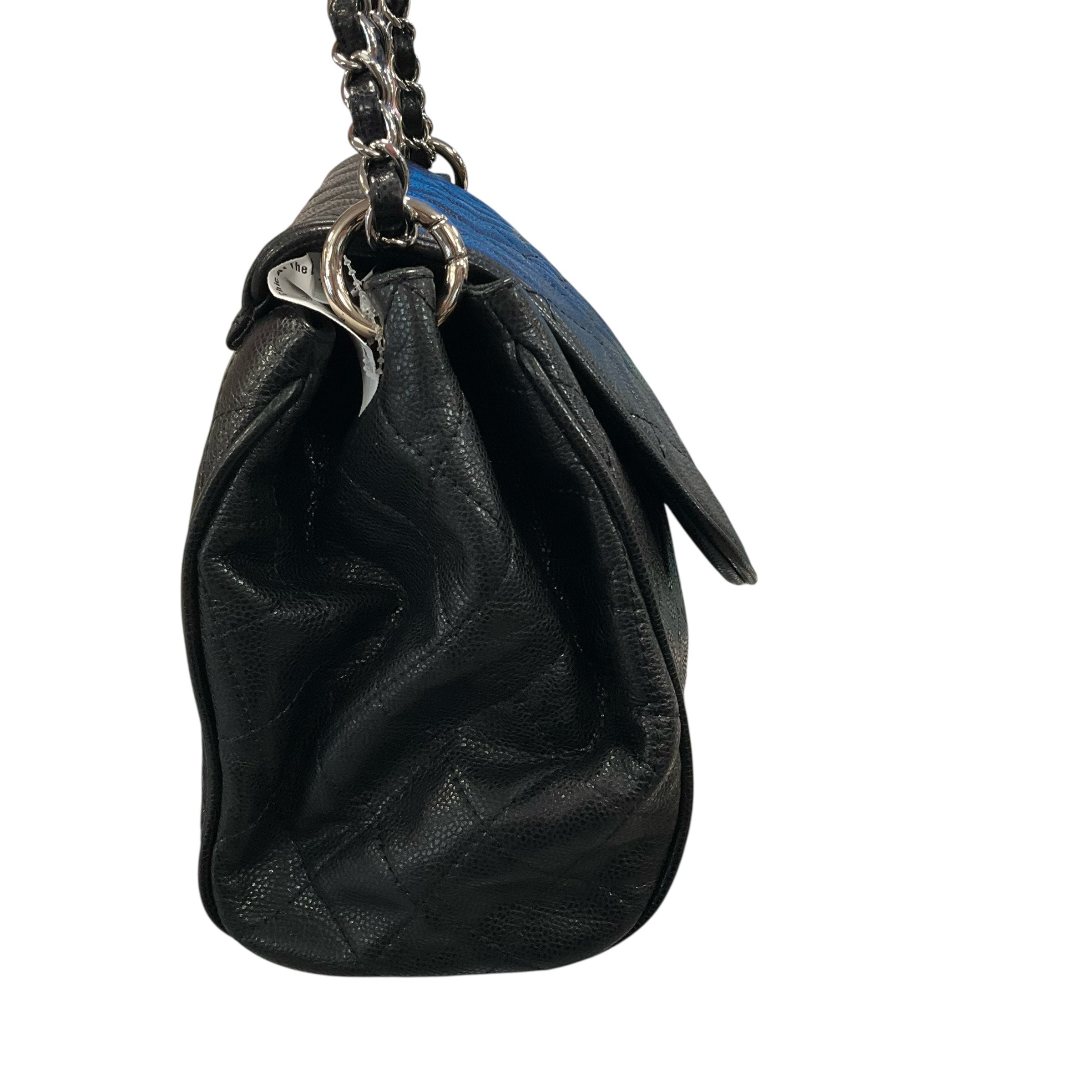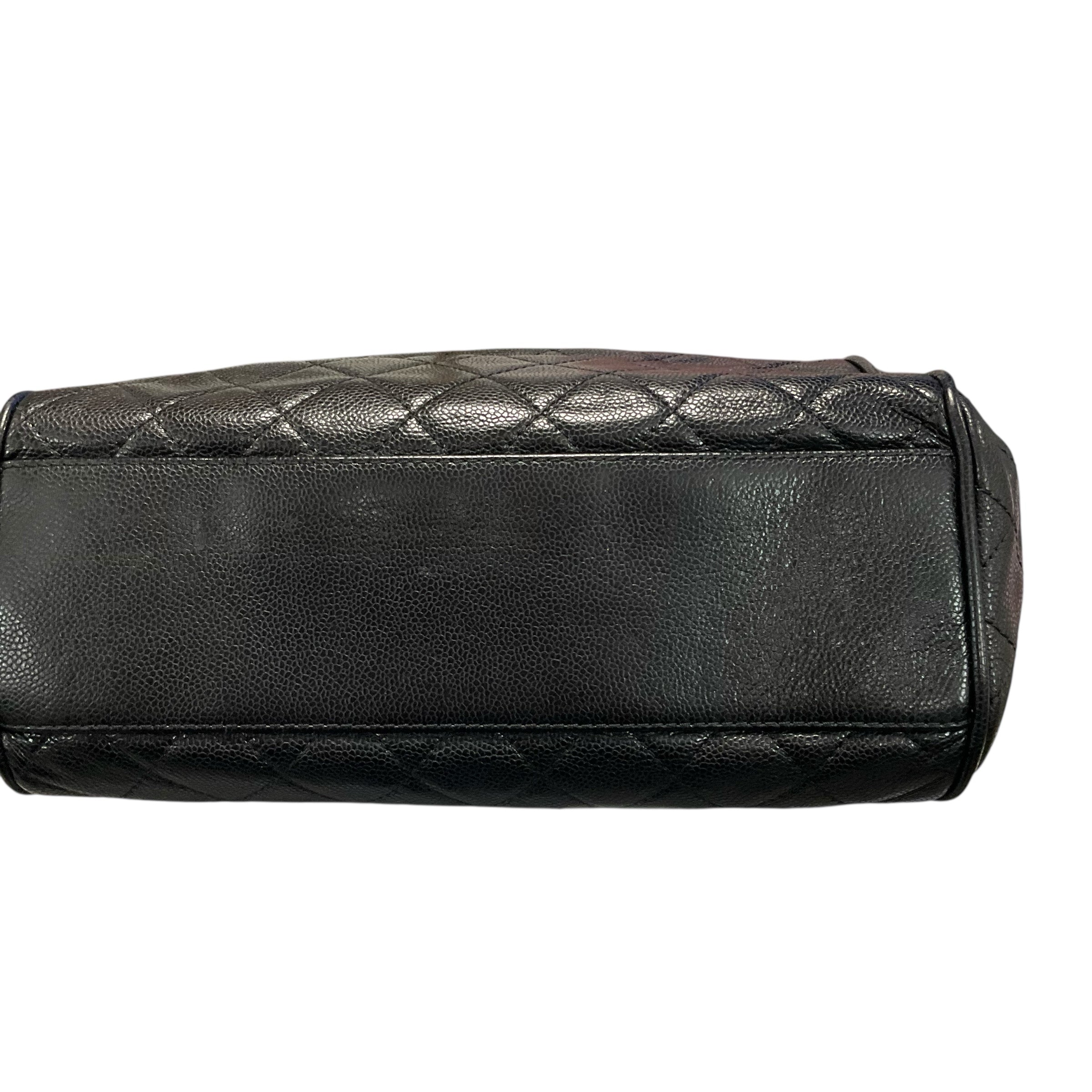 Chanel Black Caviar Leather Flap Silver Chain Bag.29237-69 Measurements: Length 11" Width15" Depth 4.5. CHIC AT THE BEACH,Lewes,DE.19958.