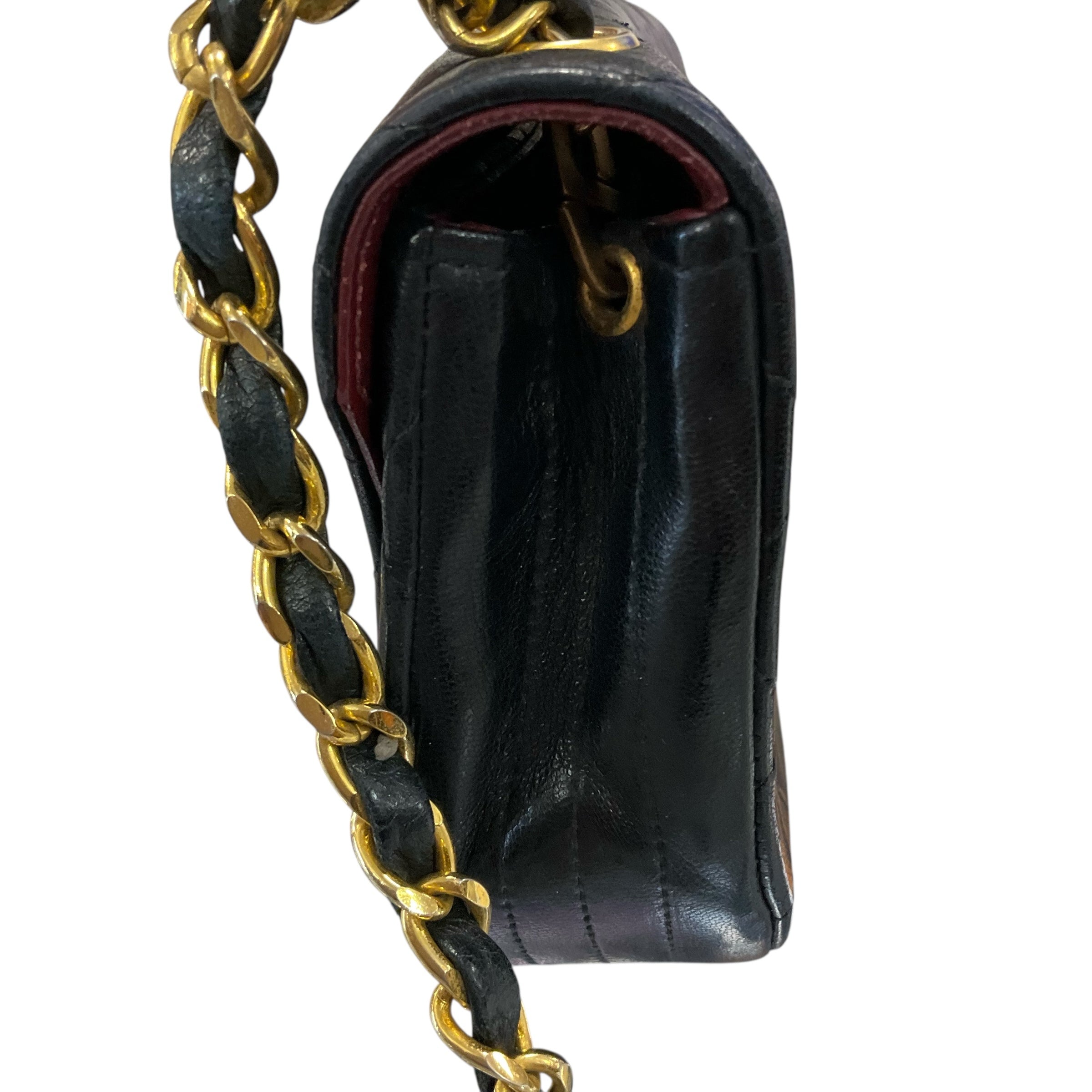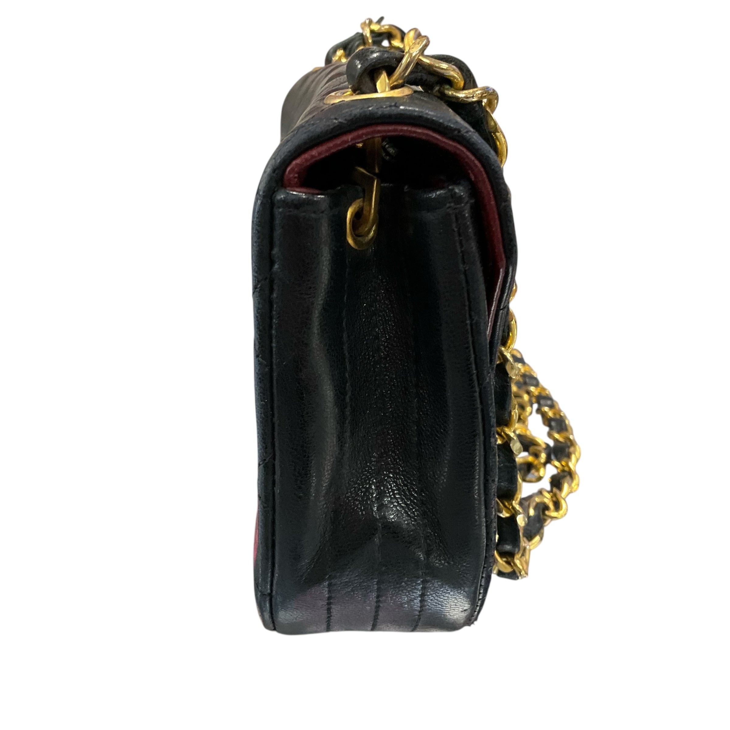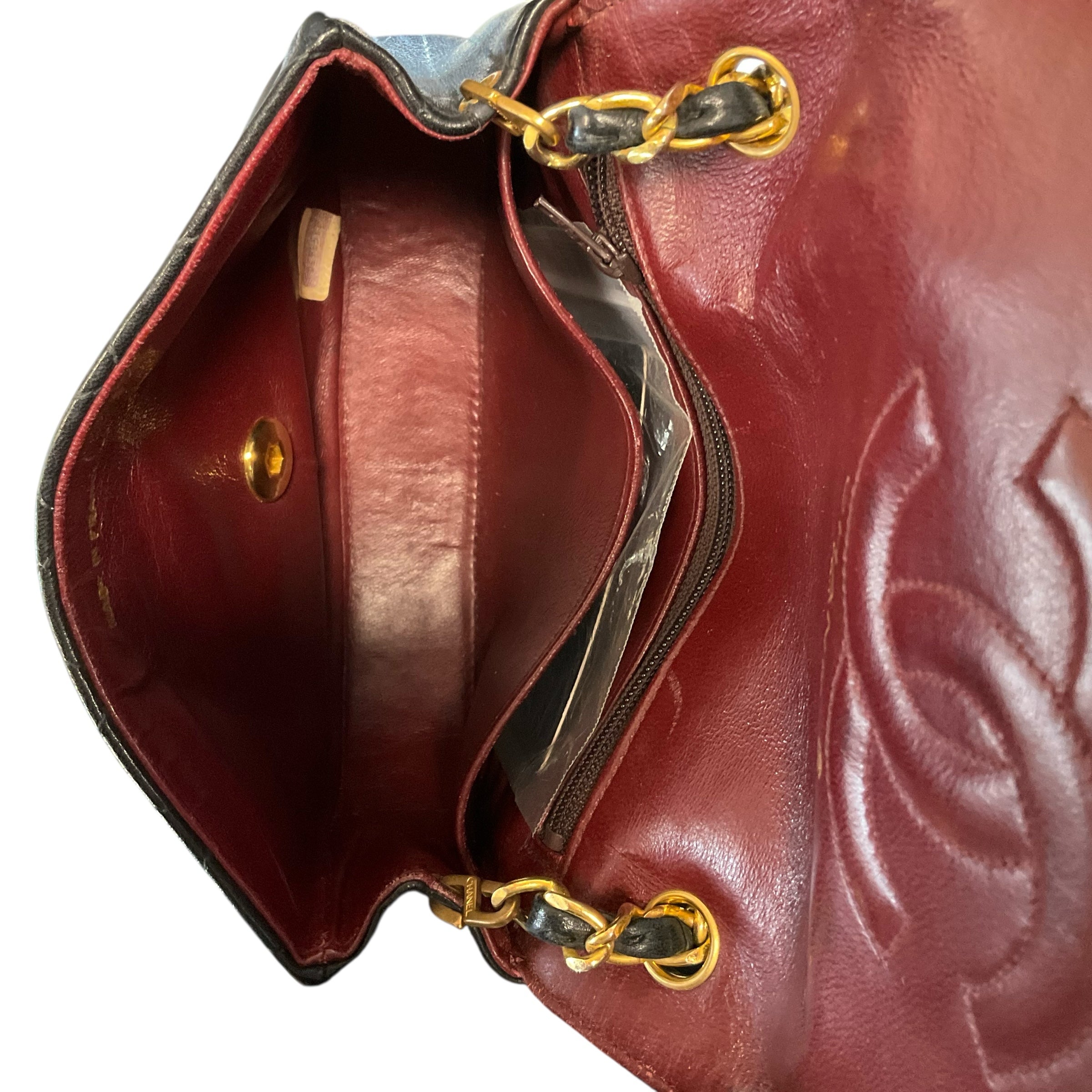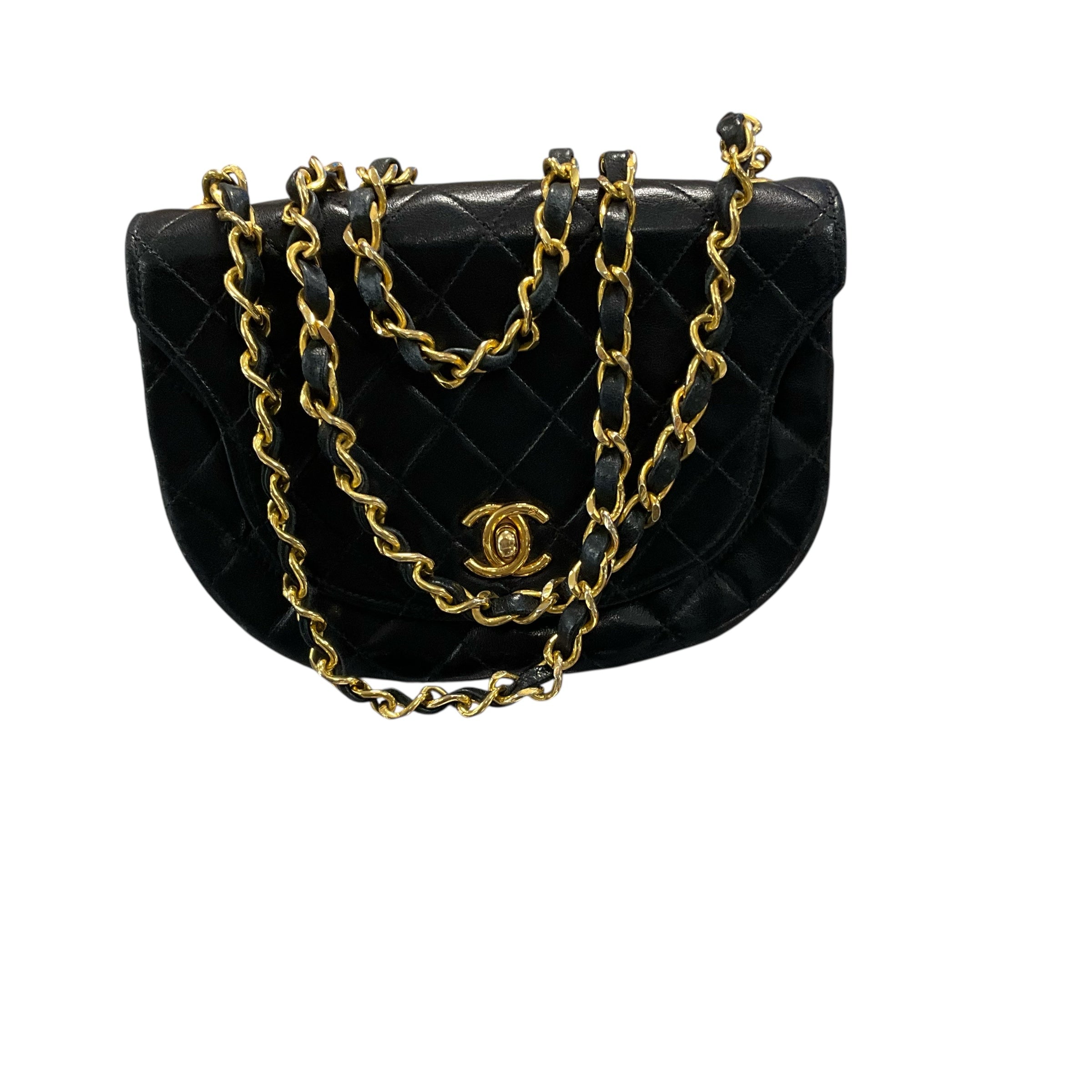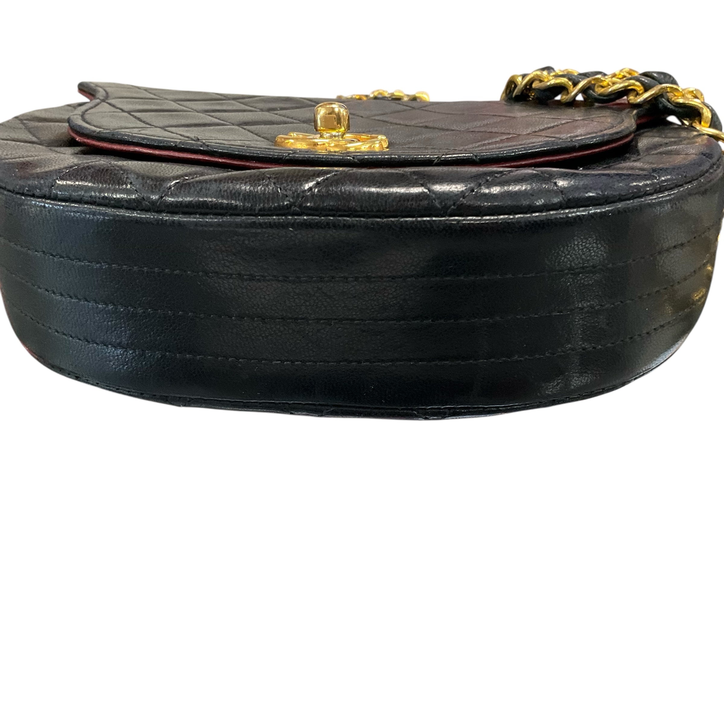 Chanel Black Lambskin 24k Gold Hardware.29590-4, Measurements: Strap Drop 21"Length 5" Width 7" Depth 2". CHIC AT THE BEACH,Lewes,DE.19958.