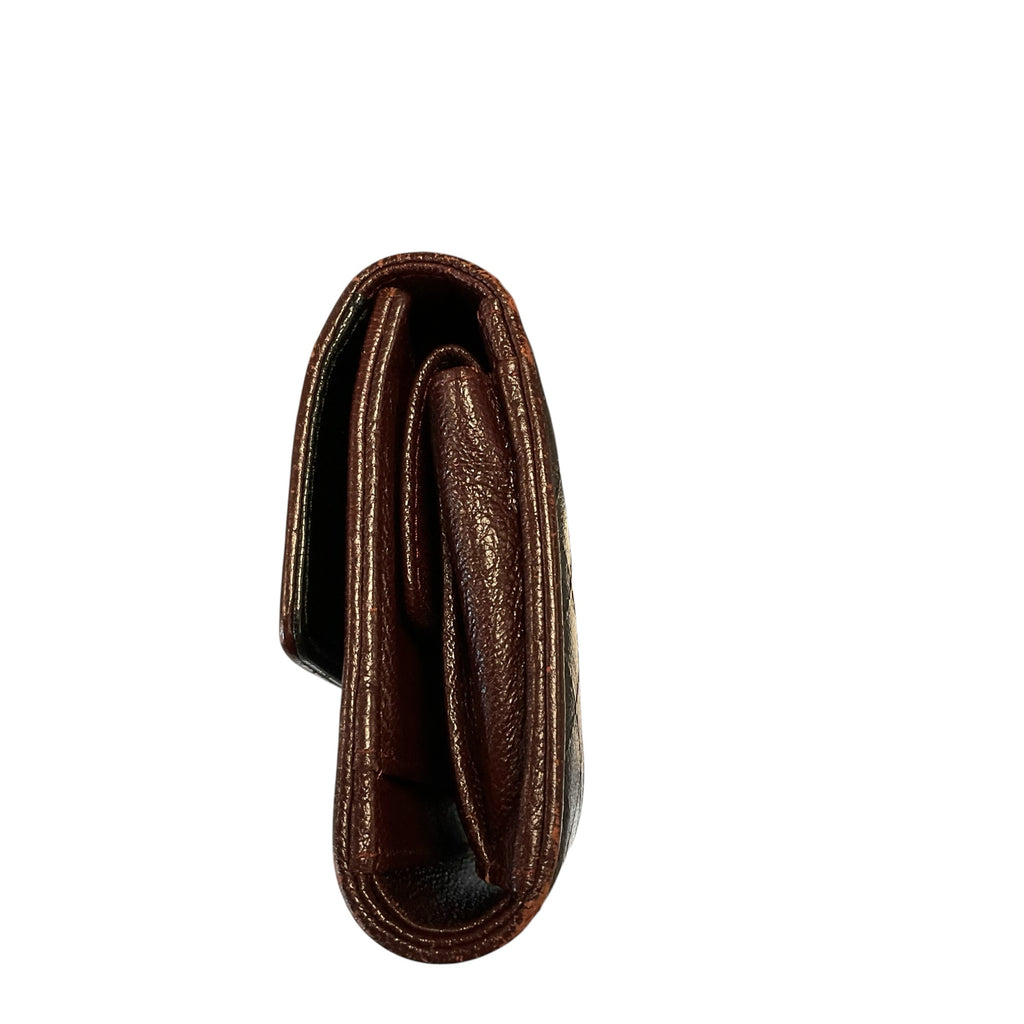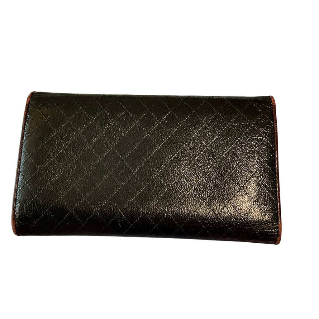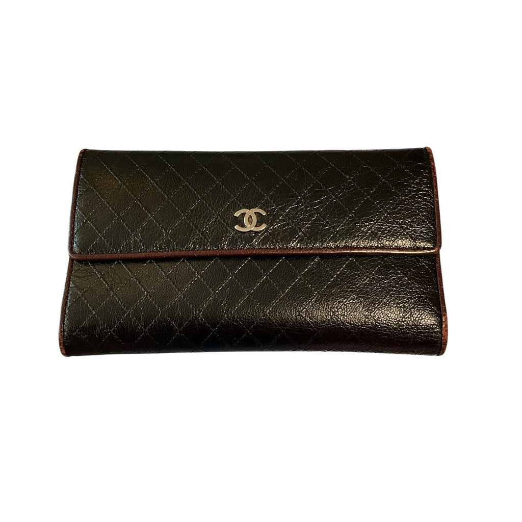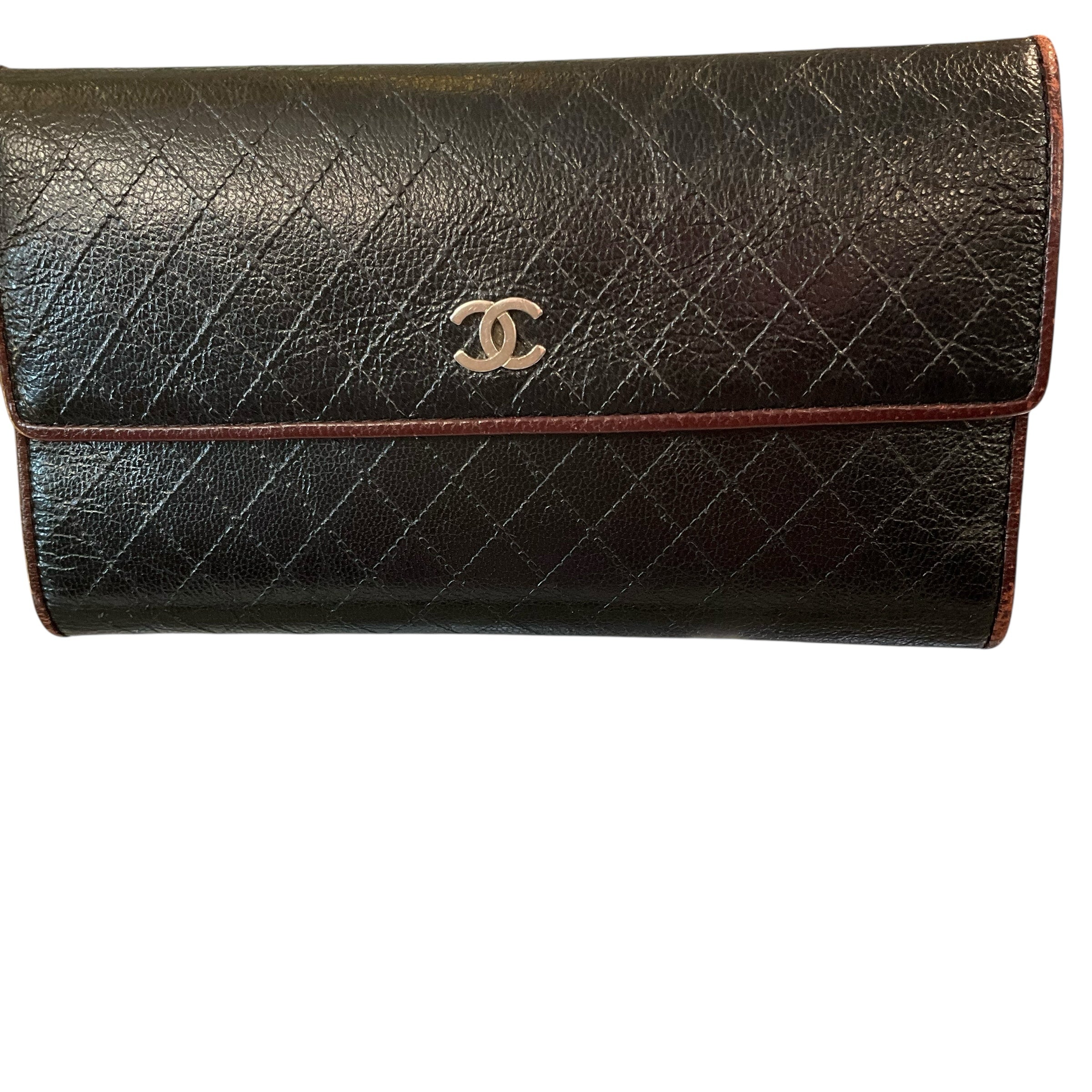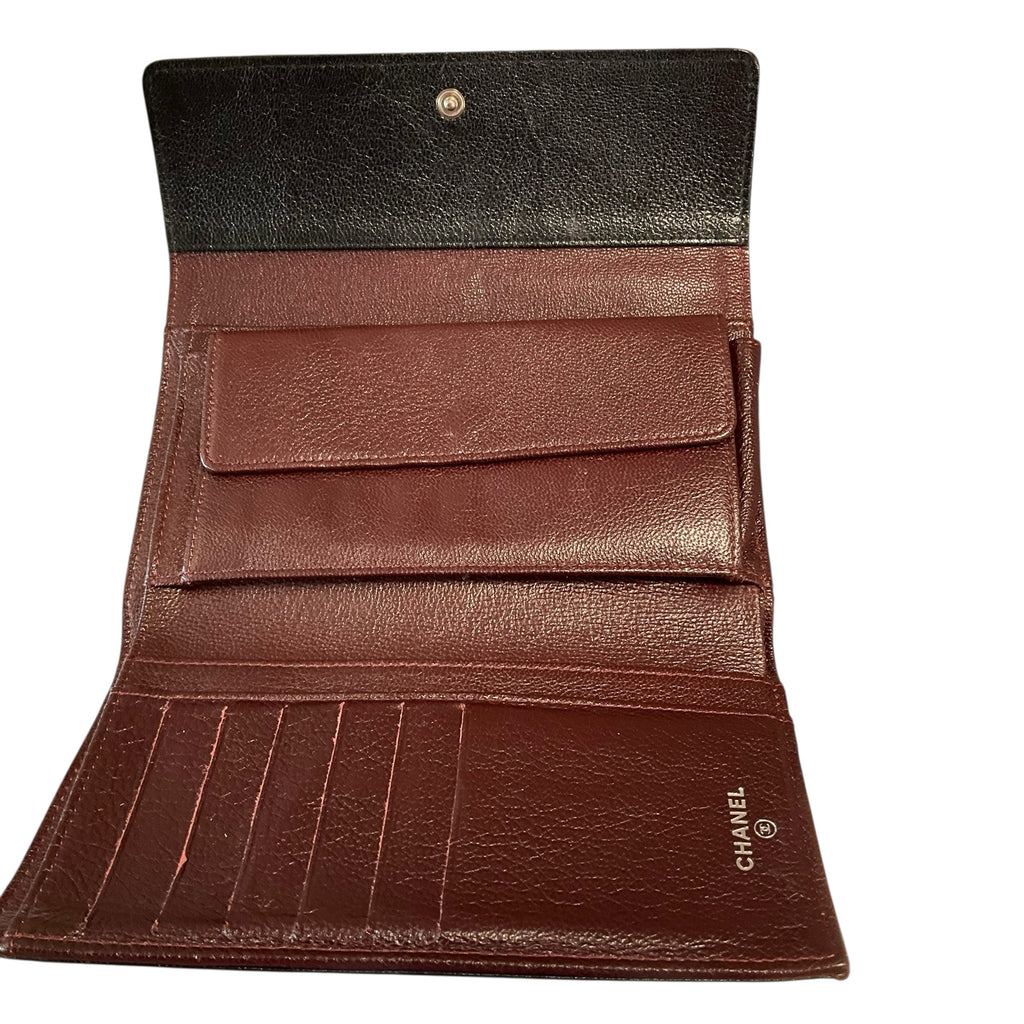 Authentic CHANEL Trifold Wallet Diamond Stitch Burgandy Trim and Lining. 6 Credit Card Slots,and Snap Change Compartment.Measurements:Length 4" Width 7" .CHIC AT THE BEACH,Lewes,DE.19958.