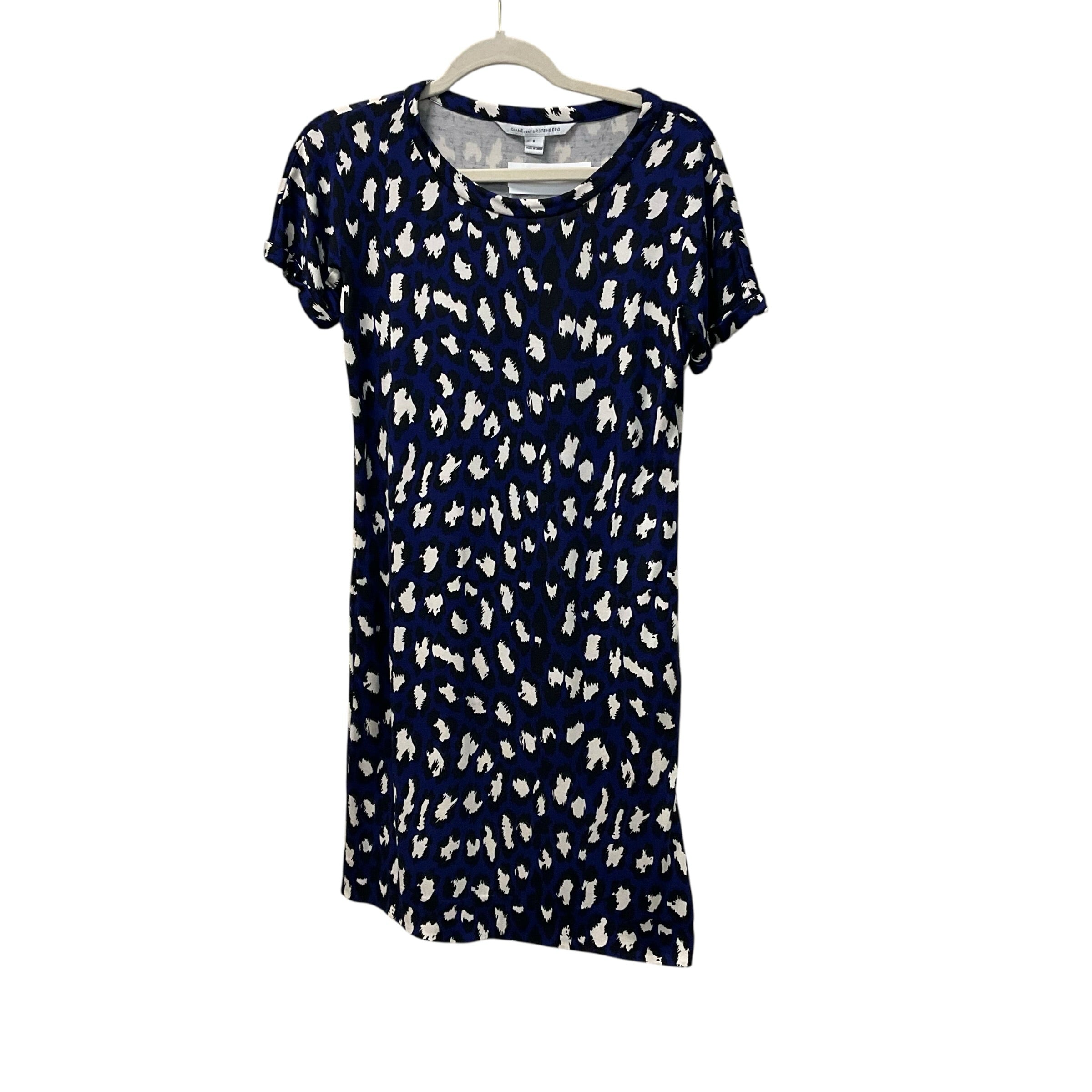 DVF Navy and White Pattern Short Sleeve Scoop Neck Dress Size 6. 29604-3. CHIC AT THE BEACH,Lewes,DE.19958.