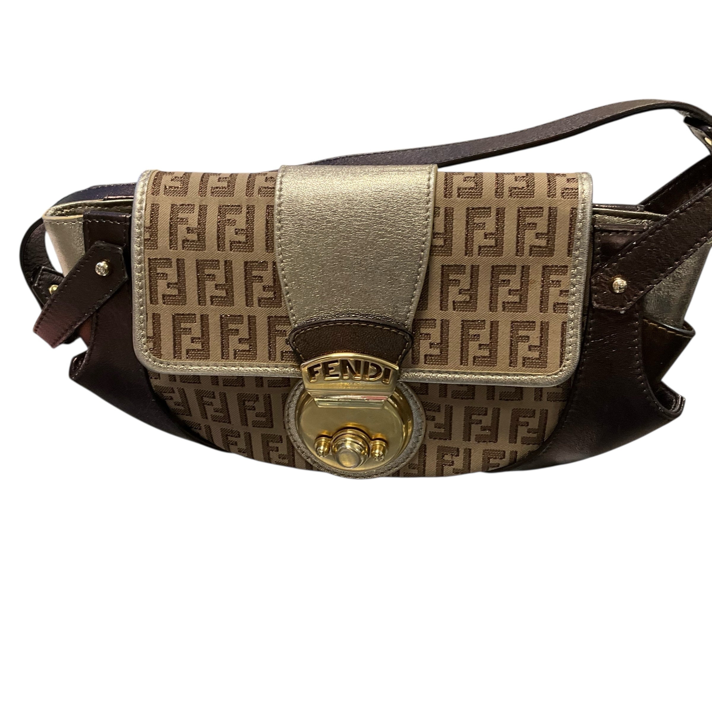 Authentic Fendi Brown Monogram Shoulder Bag. 6.75 Strap Drop. 11W X 6 H X 1.5 expandable D. CHIC AT THE BEACH Lewes Delaware