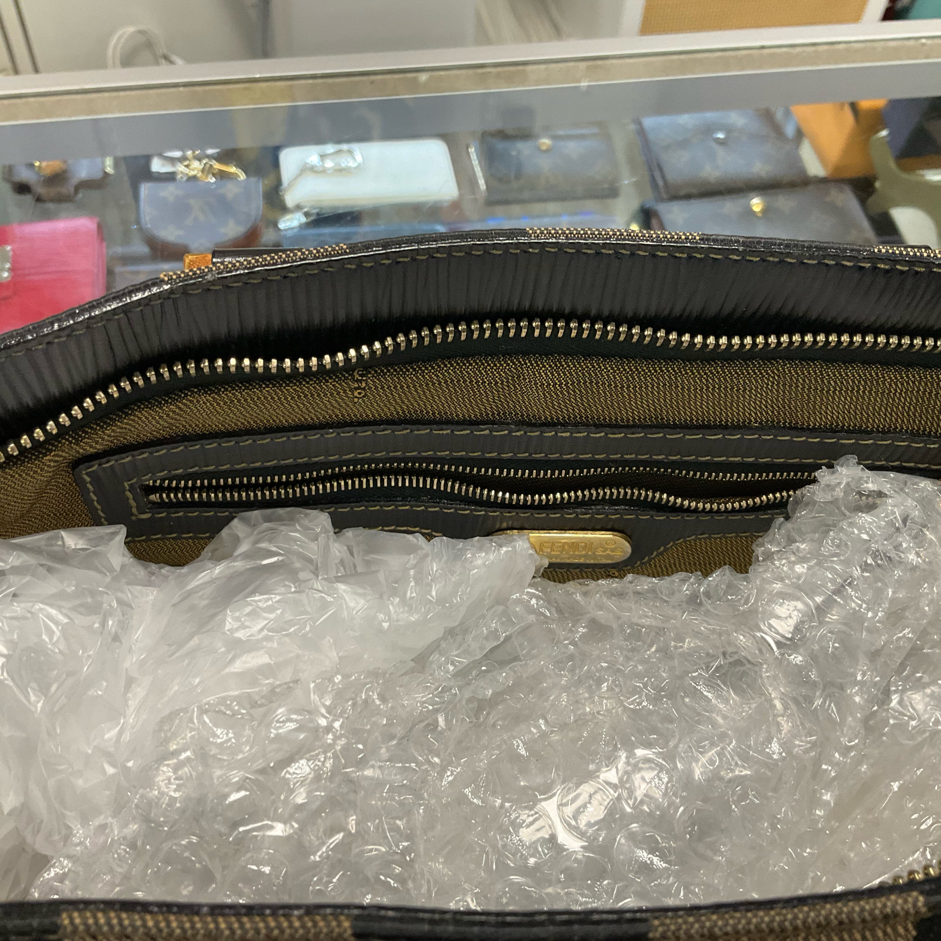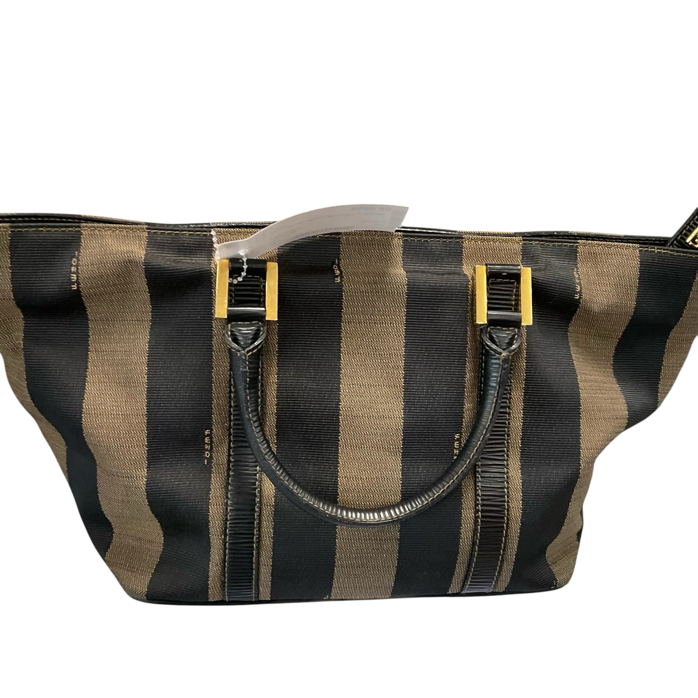Fendi Brown/Black Striped Top Handle Bag. 29590-3 @4.5 W x 8 H x 6.5D.. 3 Inch Strap Drop. CHIC AT THE BEACH Lewes Delaware.