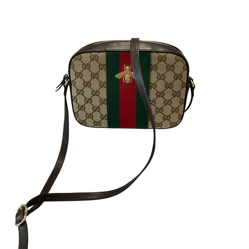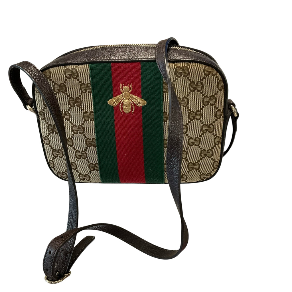 Gucci Brown Bumble Bee crossbody. Adjustable Strap 14-23 Inches. 9W X 6H X 3D. CHIC AT THE BEACH Lewes Delaware