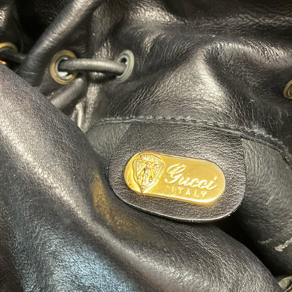 Gucci Black Leather with Gold Ring Draw String Closure.29518-38.CHIC AT THE BEACH,Lewes,DE.19958.