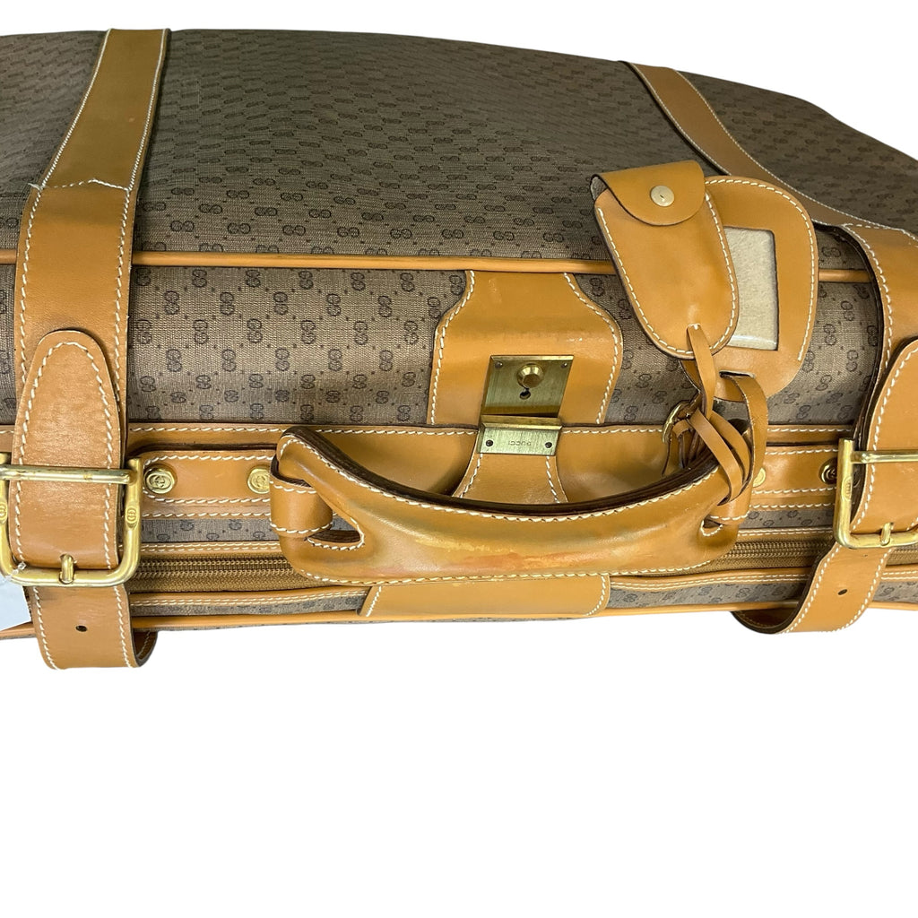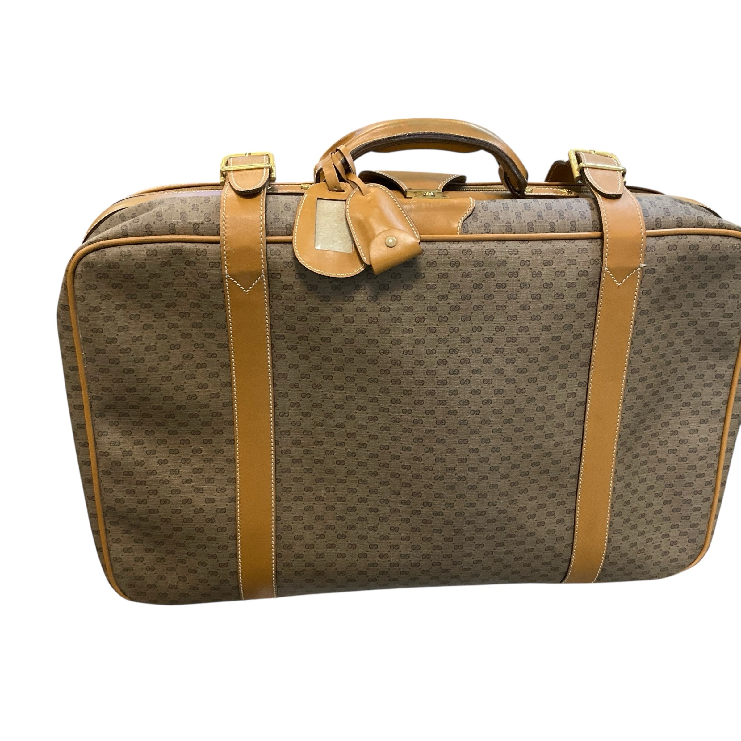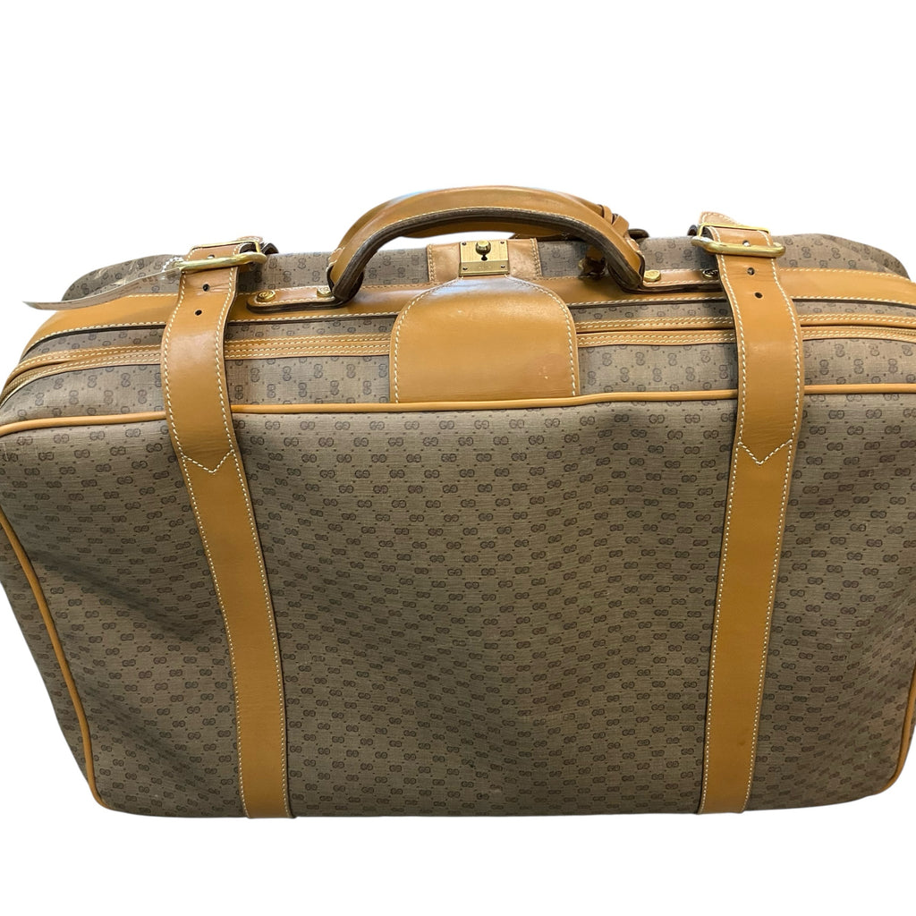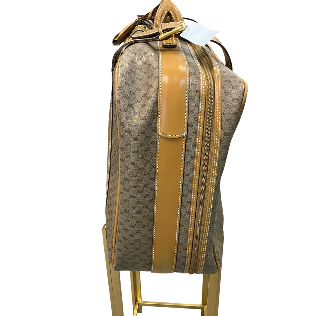 Authentic Gucci Monogram Travel Bag With Double Straps and Leather Handles.Leather I.D. Tag and Key Tab .Seven Gold Feet on Bottom.Measurements: Width 24" Length 15" Depth 7.5 CHIC AT THE BEACH ,Lewes,DE.19958.