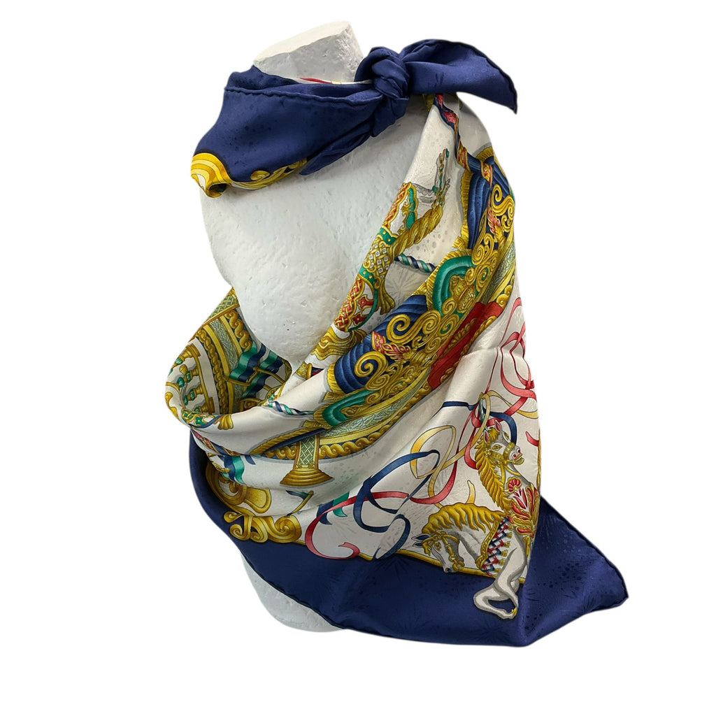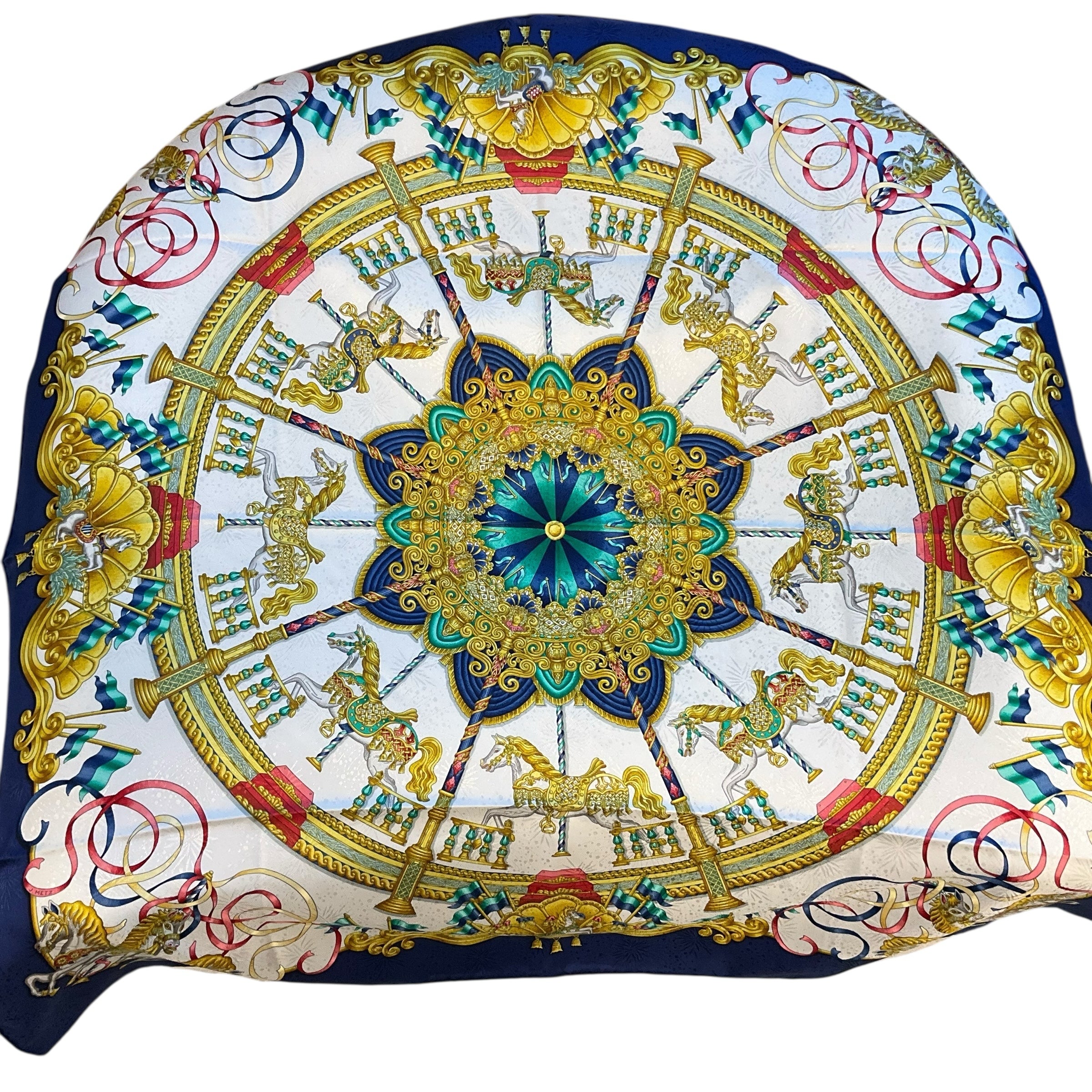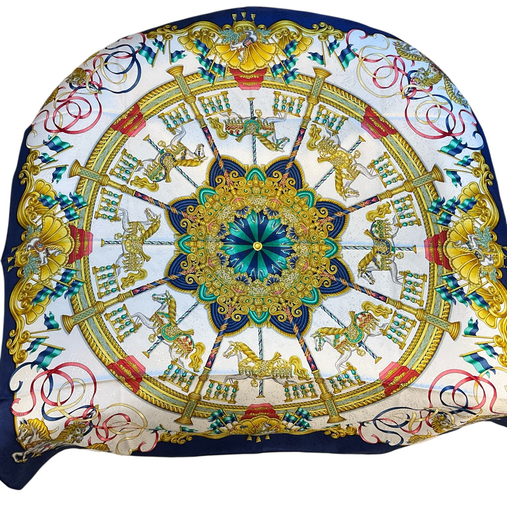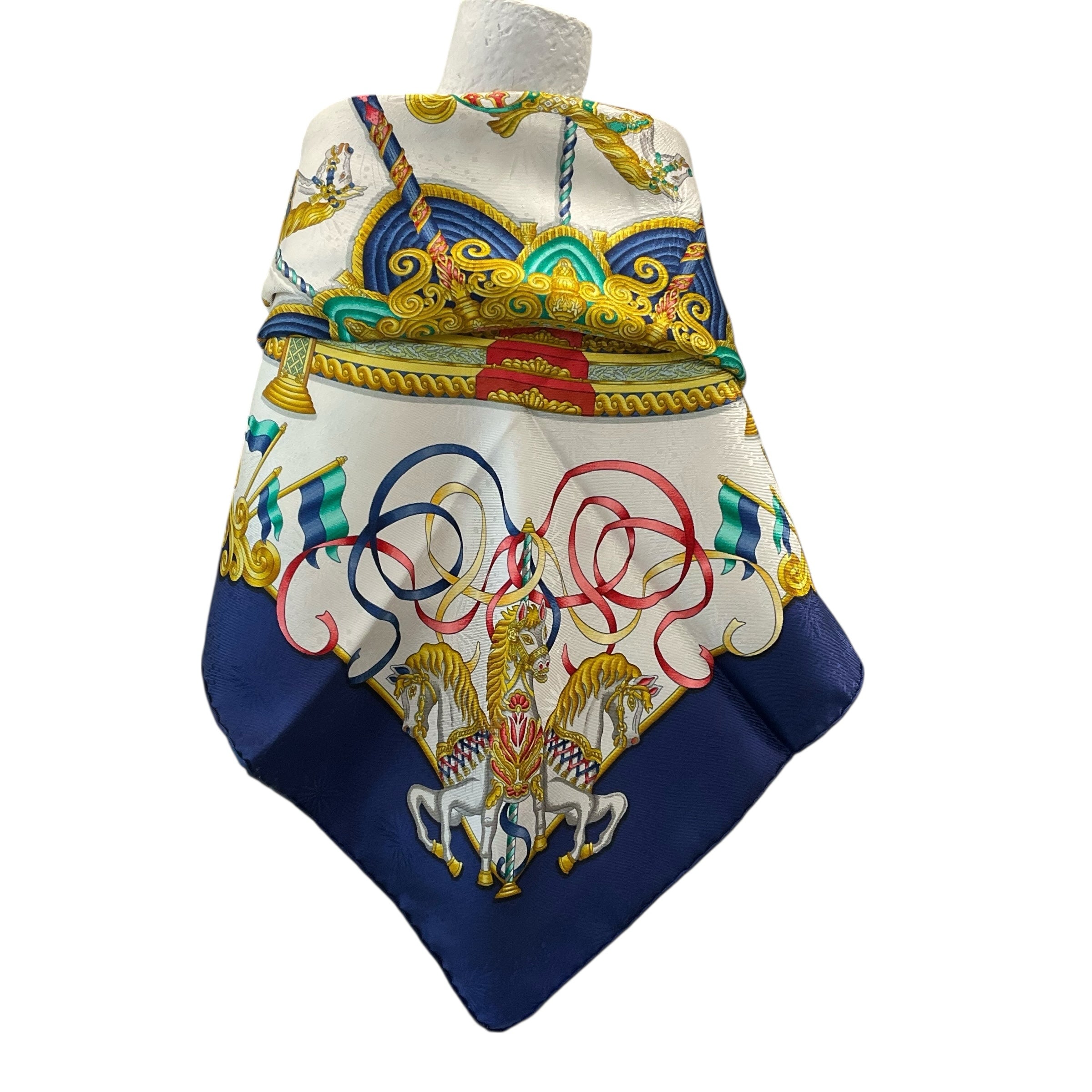 Hermes Royal/White/Yellow Luna Park Jacquard 29411-6. CHIC AT THE BEACH,Lewes,DE.19958.