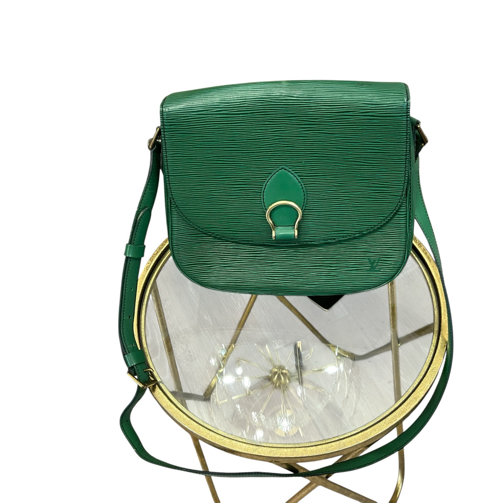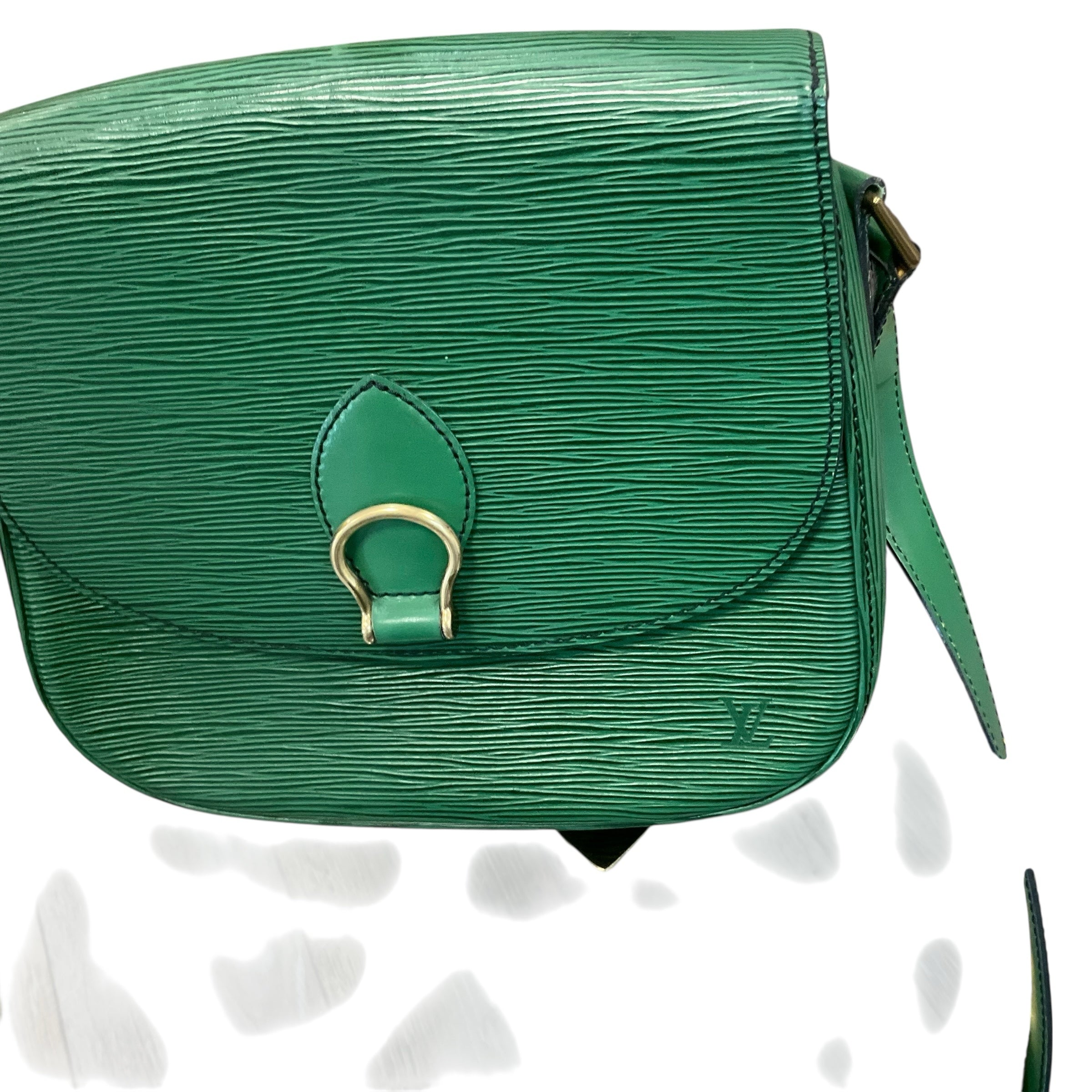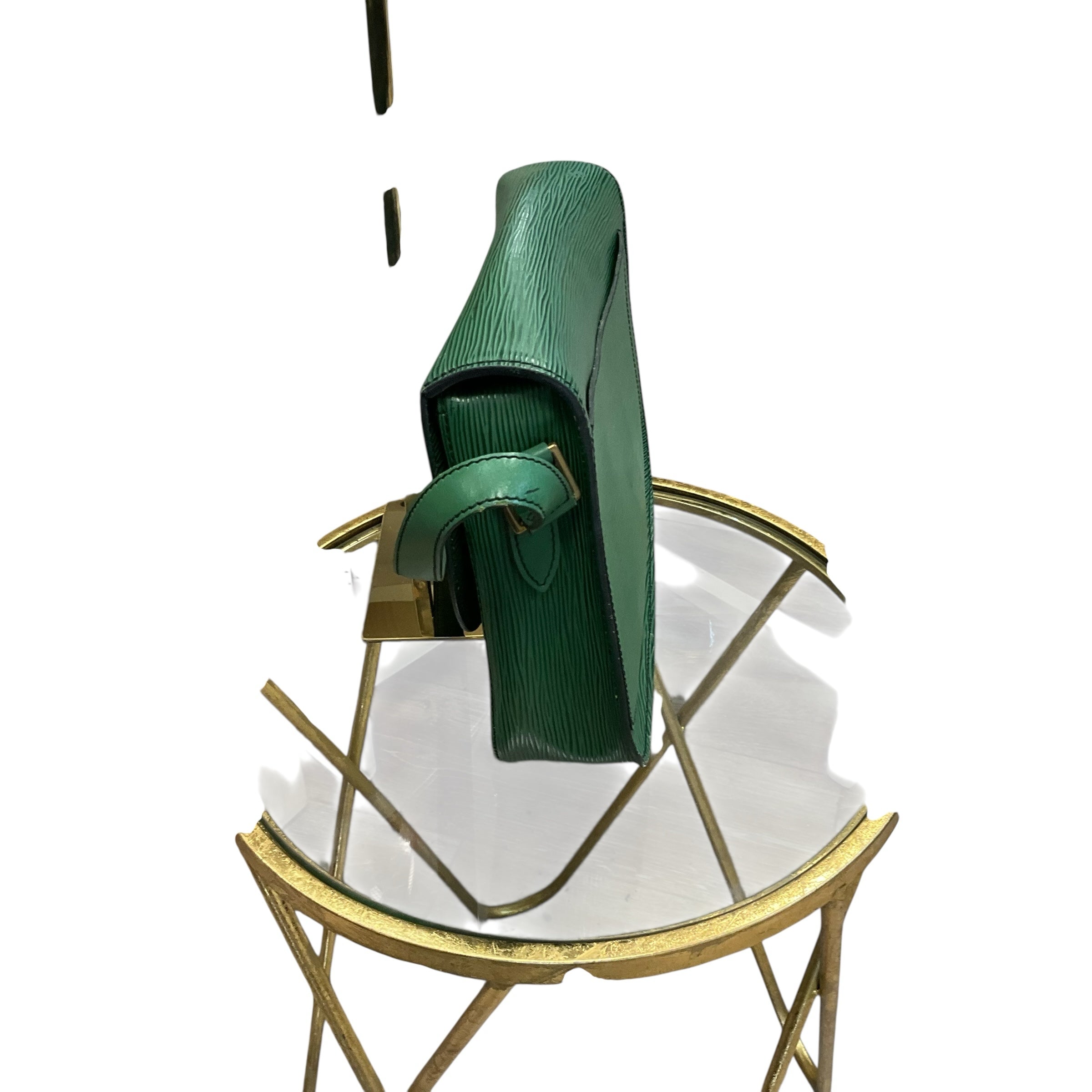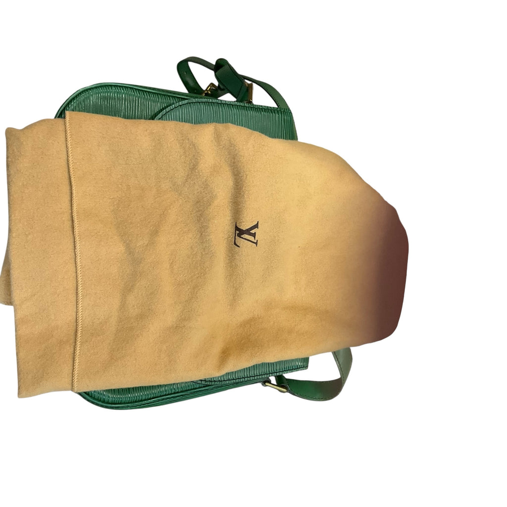 Louis Vuitton Green Epi As/IS With sleeper (Sticky + Marks). Adjustable Crossbody Strap 17-23 Inches. 10W X 8.75H X 3D.